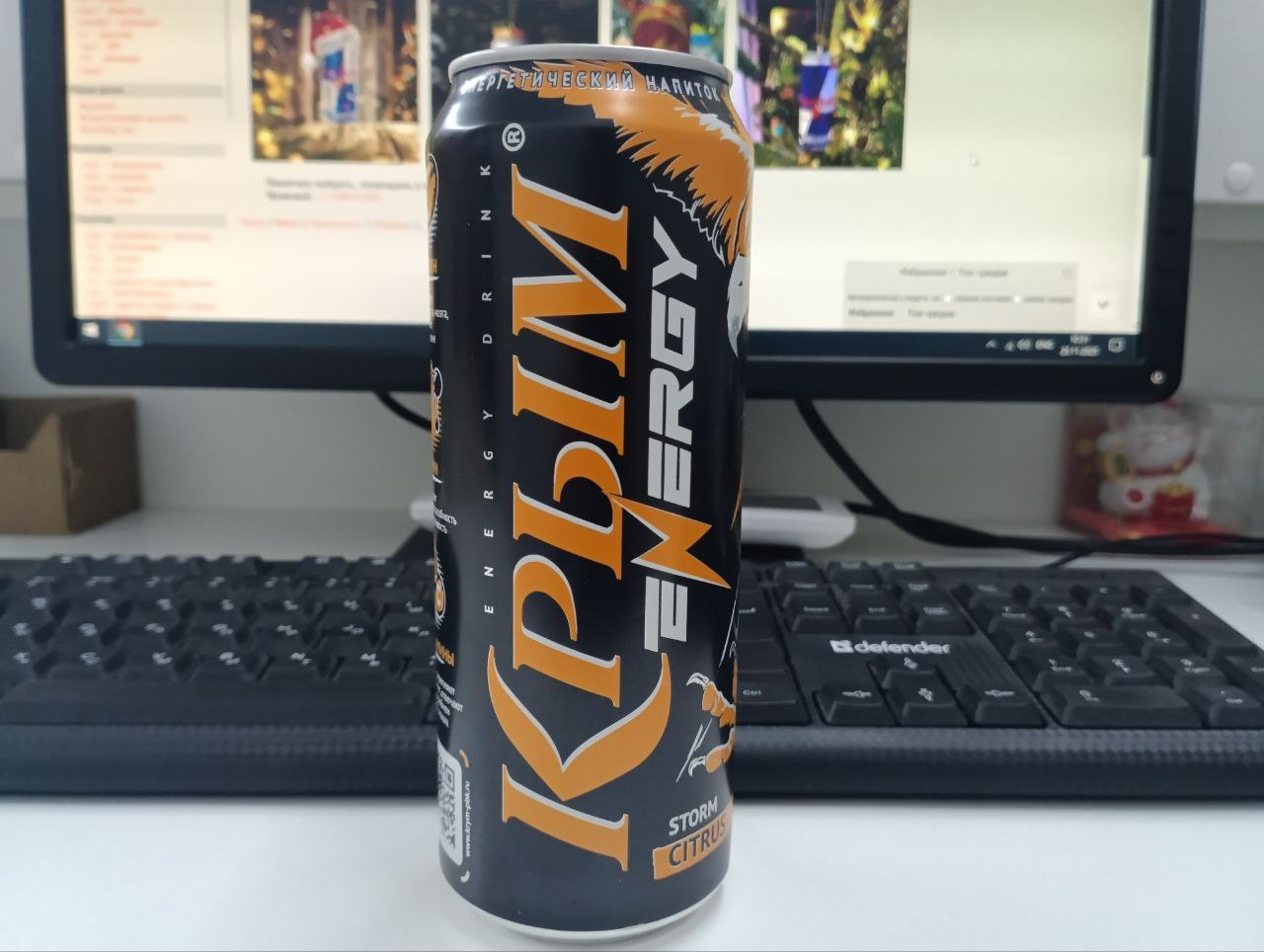 Сегодня захотелось чего-нибудь новенького, и вспомнил я, что наш пивобезалкогольный комбинат "Крым", работающий еще со времен СССР, уже несколько лет как влился в эти молодежные тренды и стал производить энергетики под маркой "Крым Energy". Пиво у этого завода всегда было богомерзки отвратительное (еще и дорогое), а вот всякие лимонады, колы и прочие тархуны норм, так что покупал одновременно с опаской и надеждой не выкинуть деньги на ветер. Выбрал "цитрусовый шторм" за 85 рублей. Это оказалось не мерзко, хотя химозный привкус ближе к концу банки и нагреву напитка проявляет себя. Напоминает стандартный Адрик, только не такой кислый, плюс отдает ананасом (не знал, что он к цитрусам относится), и таки да, в составе ананасовый ароматизатор. Ну, хотя бы без сахзамов, уже спасибо. В следующий раз, если потянет на местную продукцию, поищу их арбузный или ягодный энергос.