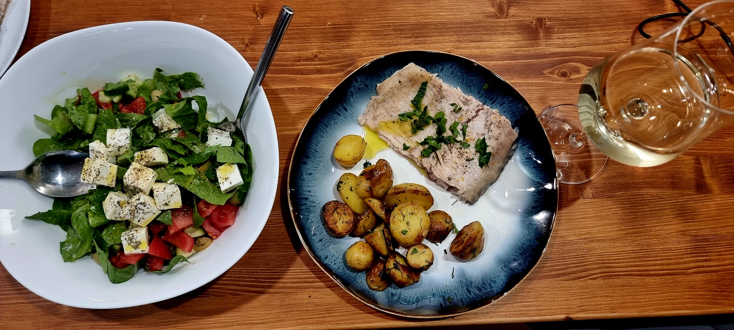 Карп сувид. Брал готовое замороженное филе, не понравилось — суховато вышло. Но совсем нет костей, то-ли сувид это сделал (ии обещал такой эффект), то-ли филе было подготоленное. Нужно повторить со свежим теперь.