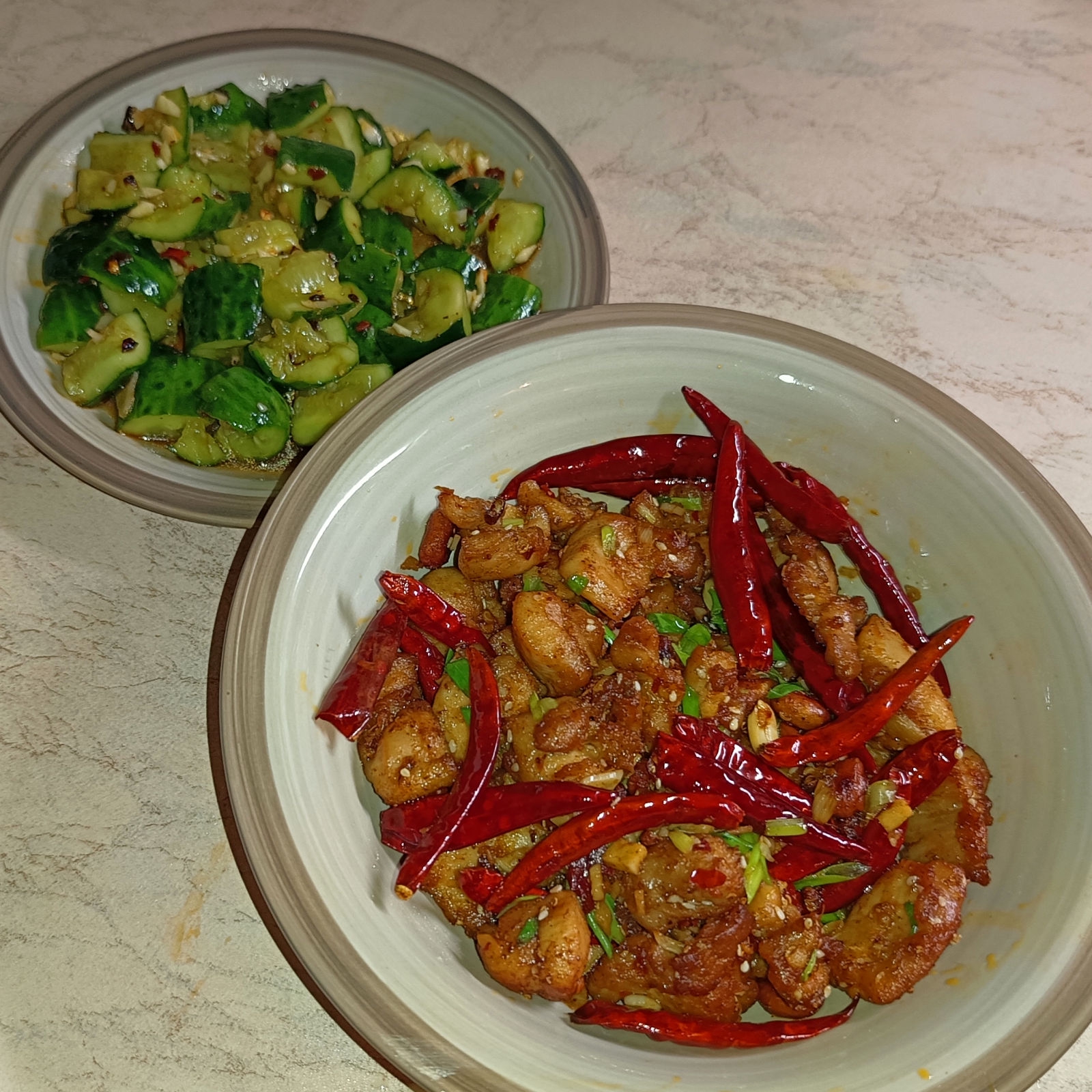Сычуаньского хрючева псто. - Мапо тофу с лапшой - Маишаншу ака "муравьи лезут на дерево". Называется так, потому что кусочки фарша на стеклянной лапше похожи на насикомых на ветках. - Ганьбянь Сицзидоу (надеюсь, не обосрался с Палладием), стручковая фасоль по-сычуански. - Лацзыцзи ака жареная курица с перцем по-чунцински. Ну или индюха, как у меня. Охуенчик, надо будет потом из более мягкой и сочной курочки сделать. И побольше, а то кончается быстро. А, и кунжут к ней не хочет липнуть, падла.