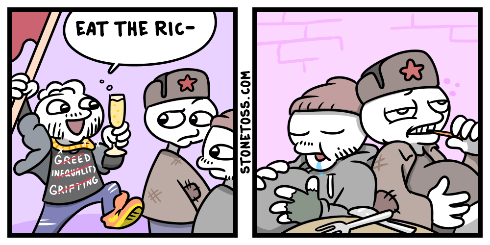 >>758140 Вот с моей колокольни туда НЕОБХОДИМО масло, в котором жарились бы тонны лука, моркови и сельдерея. Ещё можно капусту, она дешман тоже. А ещё к супу подавать надо хотя бы одно целое яйцо и несколько кусков хлеба. Без этого это неполноценное карательное "блюдо" созданое по принципу накидать что-то отдалённо похожее на еду что бы рабы не сдохли с голоду, а то им ещё 16 часов пахать. Если люди и правда так жили раньше, то я полностью понимаю почему богатых начали есть. Респект.