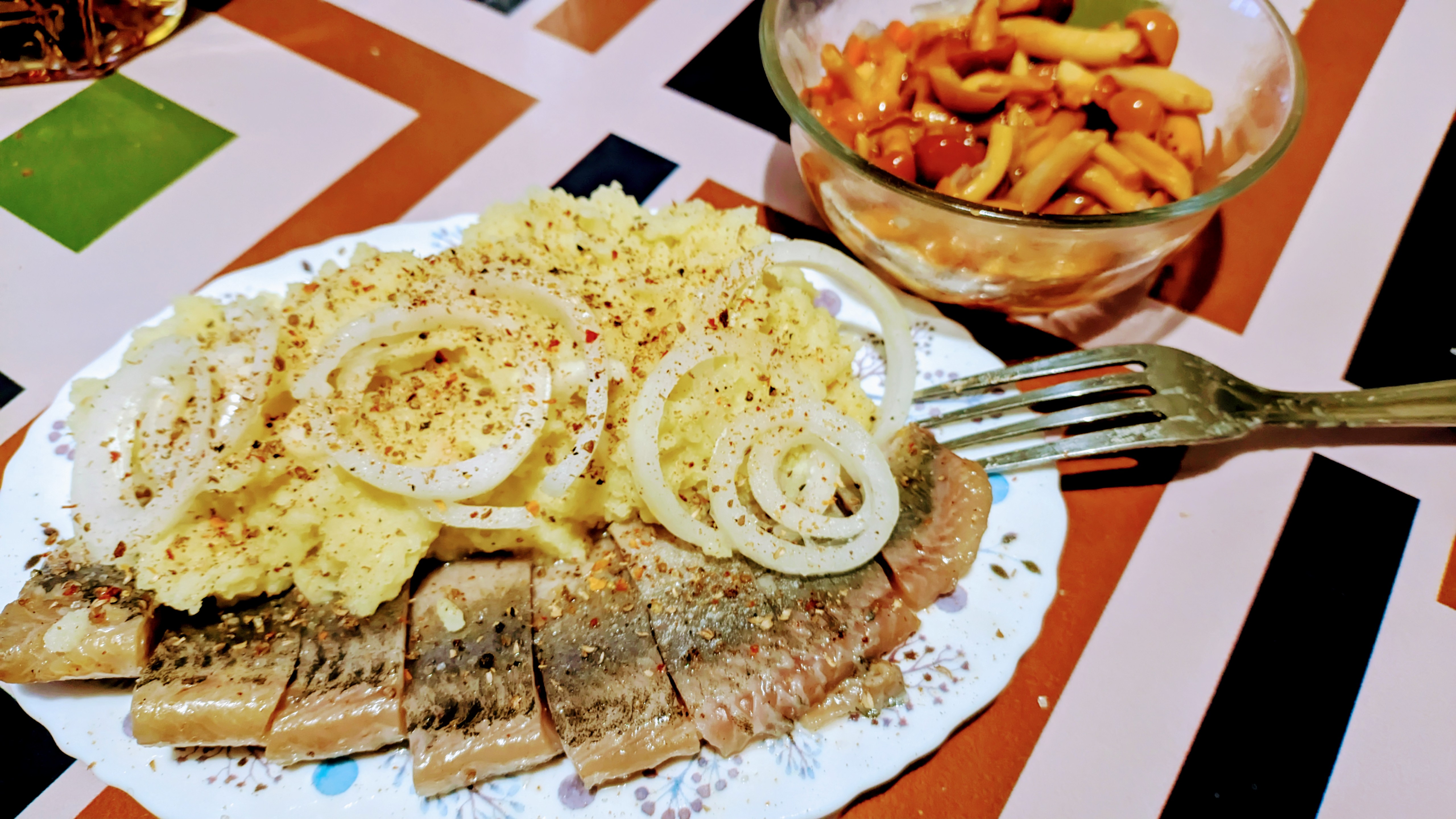 >>760085 Да, именно сырой резаный кубиками лук, в этом и фишка. И крупно вареная картошка, ее раздавливаешь ложкой в тарелке. Такой рецепт. Охуел как это вкусно.