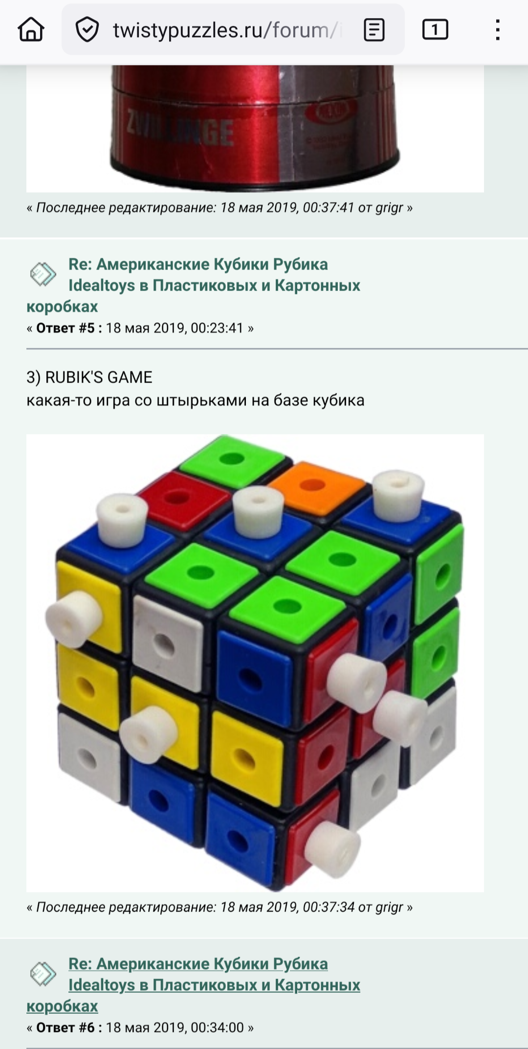 Позже я нигде не мог найти никакой инфы по такому кубику, даже убедил себя, что возможно там где-то были еще какие-то съемные бандажи, хотя он показывал мне только эти штырьки. Но сейчас вот наткнулся на фотку этого самого кубика, опять же без всяких пояснений и без бандажных пластин, только штырьки в отверстиях. https://twistypuzzles.ru/forum/index.php/topic,1108.msg20403.html?PHPSESSID=ropa4pit5d5qqaaak3kpmsf2b2#msg20403