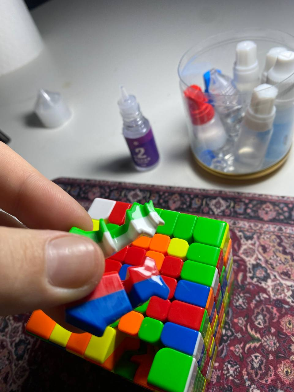 Смазочники на месте? Открываю дискас по смазке биг кубов 6х6-7х7. Делимся смазками и способом их нанесения, также указывайте модели кубов. Начну. Я в этом деле дилетант и тему не изучал с времен, когда все заливали кубы белой мару. Основы 7х7 aofu wrm и mgc 6x6 смазываю gan-ом 2 исключительно ножки, чтобы покрыть всю поверхность, и пару капель синей мару на трущие поверхности пружинок. Смазываю от одного-до трех подходов, по настроению, но эффекта хватает только на сборок 70. MGC 7x7 держу исключительно сухим, это у меня вторая основа для лукэхэд сборок. Интересно узнать людей попробовавших смазки от Thecubicle и есть ли резон их брать для больших кубов