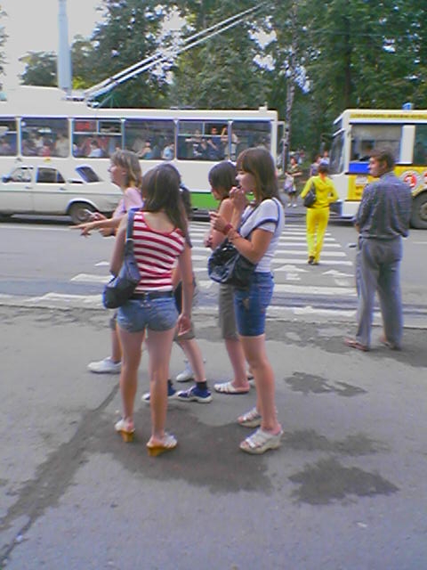 Анимешницы. Фото 2017 года. Сорян за качество, стоял на остановке с планшетом, переписывался в ВК или в карты смотрел, хз уже, а рядом анимешницы, я быстро камеру запустил и сфоткал, а, как известно, у китайских планшетов качество камеры оставляет желать