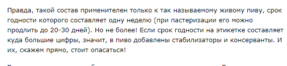 >>543608 ЖЫВое пиво - это продукт сумрачного маркетингового гения. Ни в какое пиво не добавляется спирт, это миф. Консерванты добавляют крайне редко, в основном это аскорбиновая кислота от окисления. А хранится оно неделю потому что на жывоварнях тотальный пиздец с дезинфекцией, и уже через неделю пиво натурально киснет от посторонних микроорганизмов.