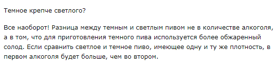 Если сравнить два пива, сваренных из одинакового количества солода и одинаковых пауз, но с солодом разной обжарки, то чем светлее - тем больше алкоголя в итоге. Ведь цвет в солоде достигается как раз карамелизацией сахаров и, значит, в зерне его остаётся немного меньше.
