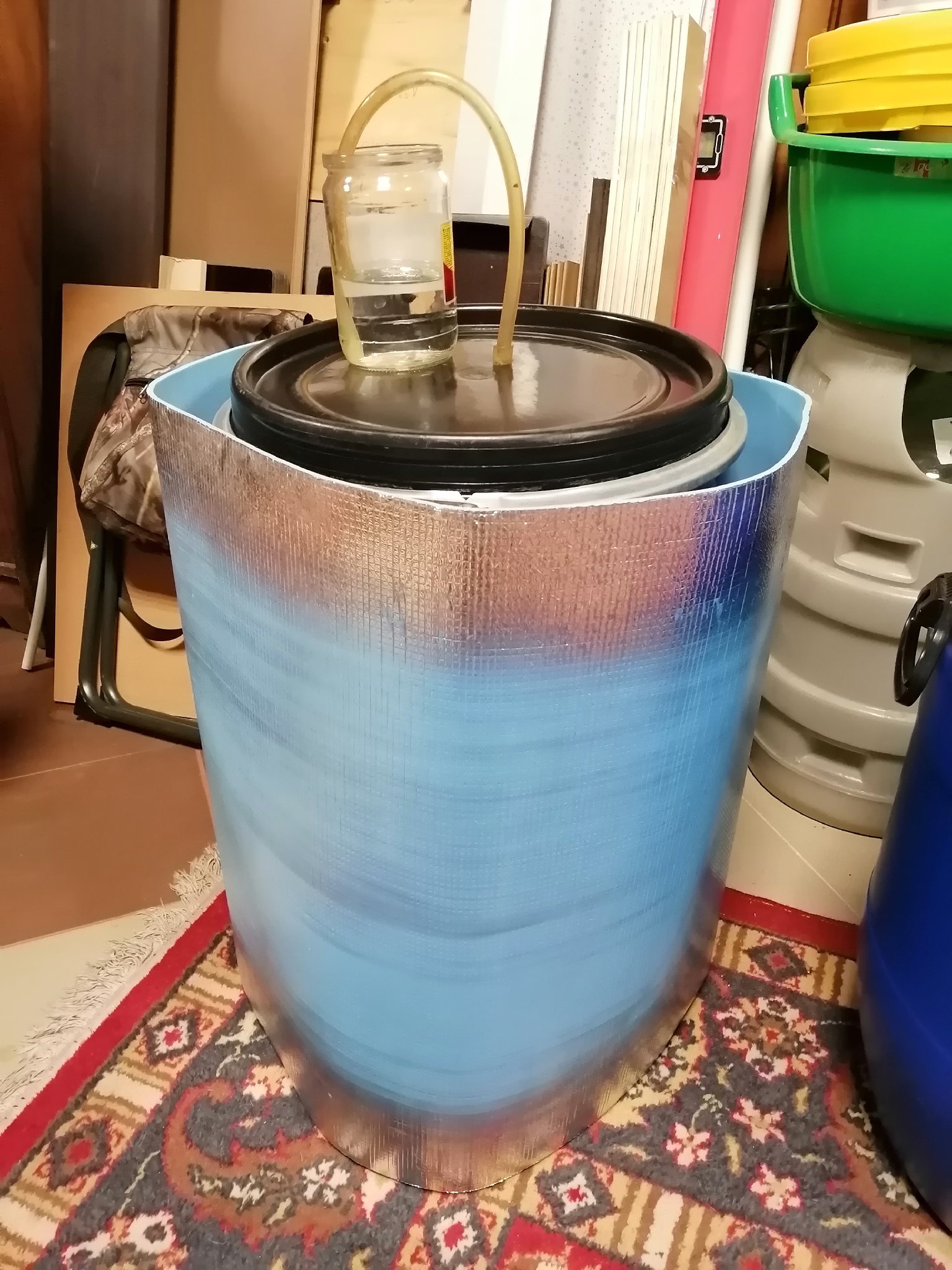 >>767694 У меня не ведро и точно не сифонит из-за особенностей конструкции. Это конусообразная молочная фляга со сдавливающим запорным механизмом, которую лет пятьдесят назад переделали в перегонный куб. Постепенно углубляясь в матчасть я понимаю почему может быть такое брожение, какое происходит у меня в этот раз. Так как бродит в той же таре, в которой было сварено, в сусле очень мало кислорода. В этот раз охлаждение было не очень эффективным и не было возможности барахтать емкость насыщая ее кислородом. Поэтому брожение не очень яркое, но очень стабильное.