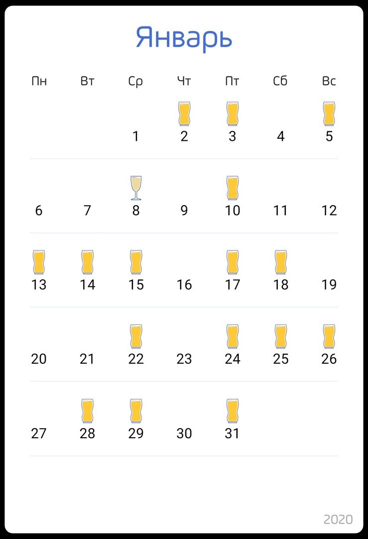 А еще, как вы думаете сильно хуево, что я пью вот так п.9. Ну это все дни, когда я выпивал от 0.5 -1л (на выхах иногда 2-3) певка. Чувствую я себя хорошо, голова никогда не болит, никаких похмелосов и тд, а вот посмотришь на статистику и пиздец. Я успокаиваю себя, ну это же мое пиво, НАТУРАЛЬНОЕ.