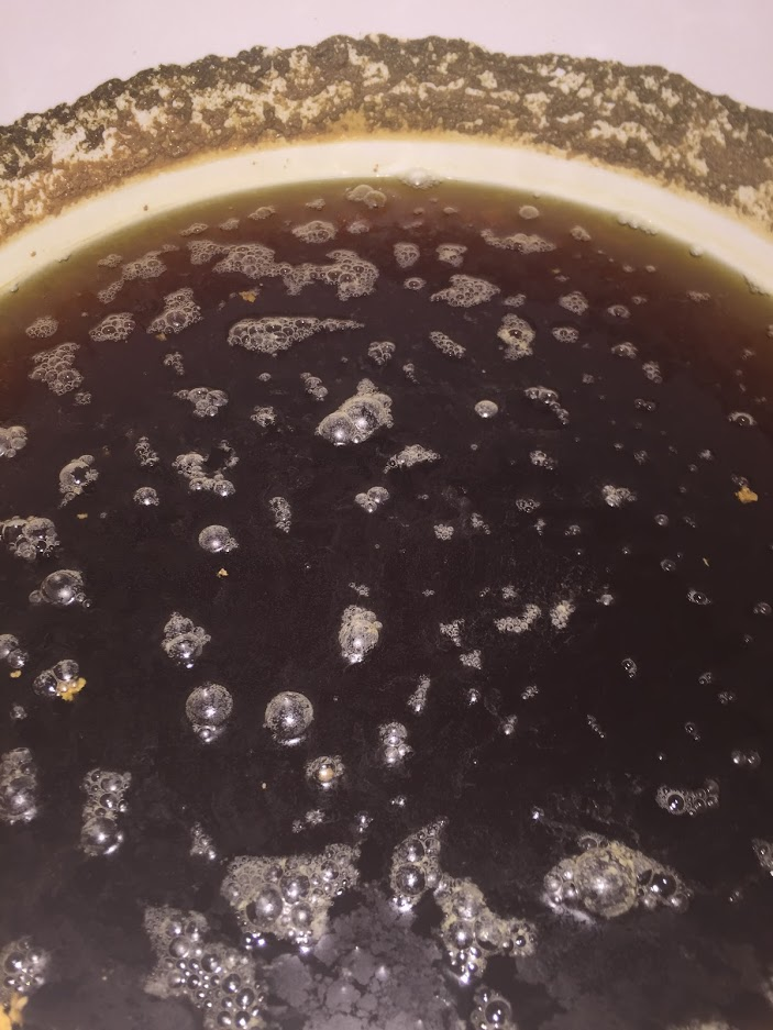 Задегустировал. Ну, пить можно, но получилось что-то очень странное. Шоколадно хлебный "стаут" с низкой плотностью, заметной горчинкой и цитрусовым ароматом. Тупо звучит, да?