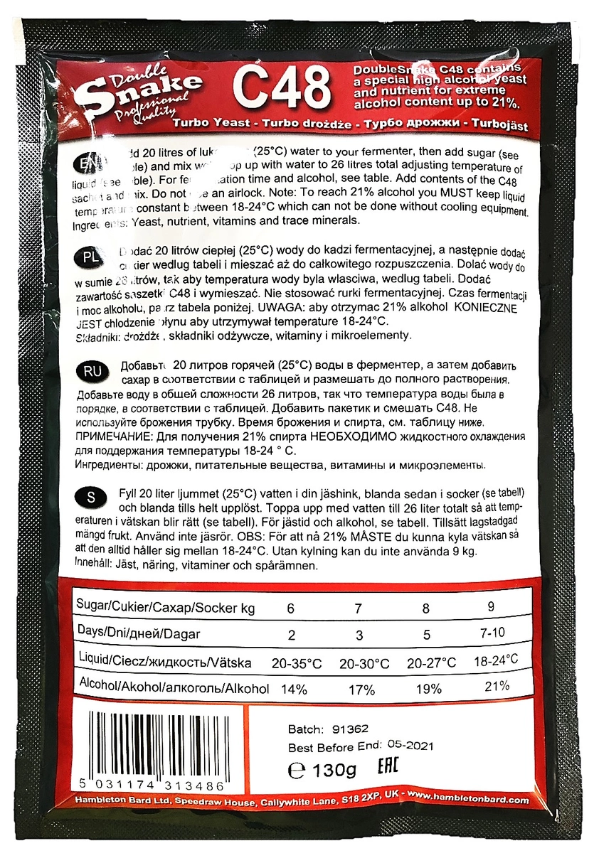и что по дрожжам? вот есть допустим дрожжи Snake c48, хочу я поставить банки по 2-5 литров, а дрожжей в пачке 130 грамм. на упаковке написано про какие-то 6-9 кг сахара, а у меня будет килограмм. могу ли я не использовать всю пачку?