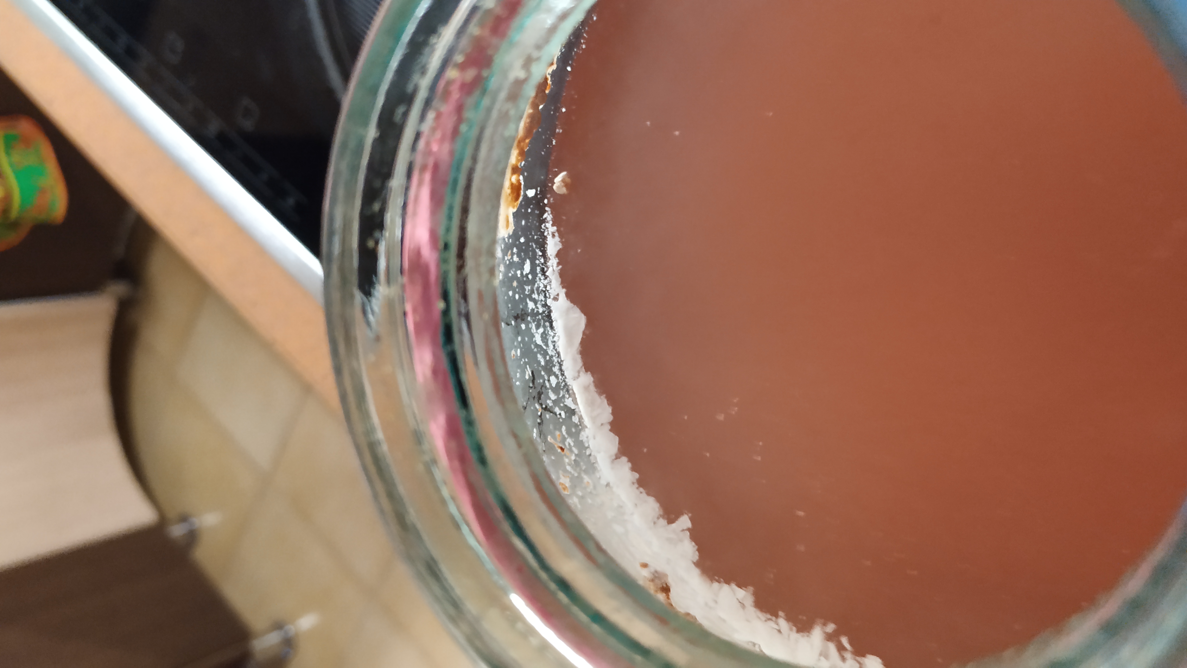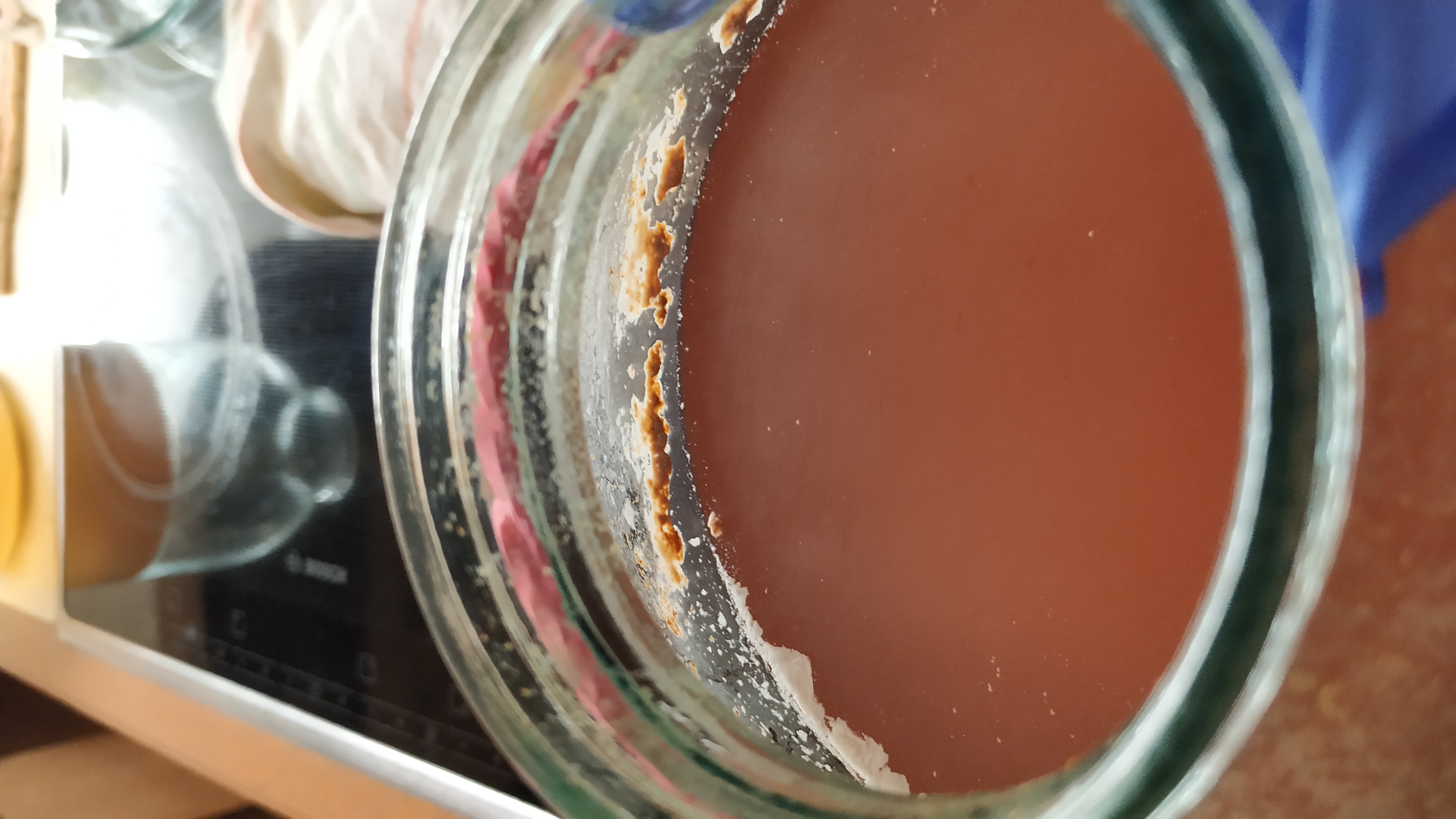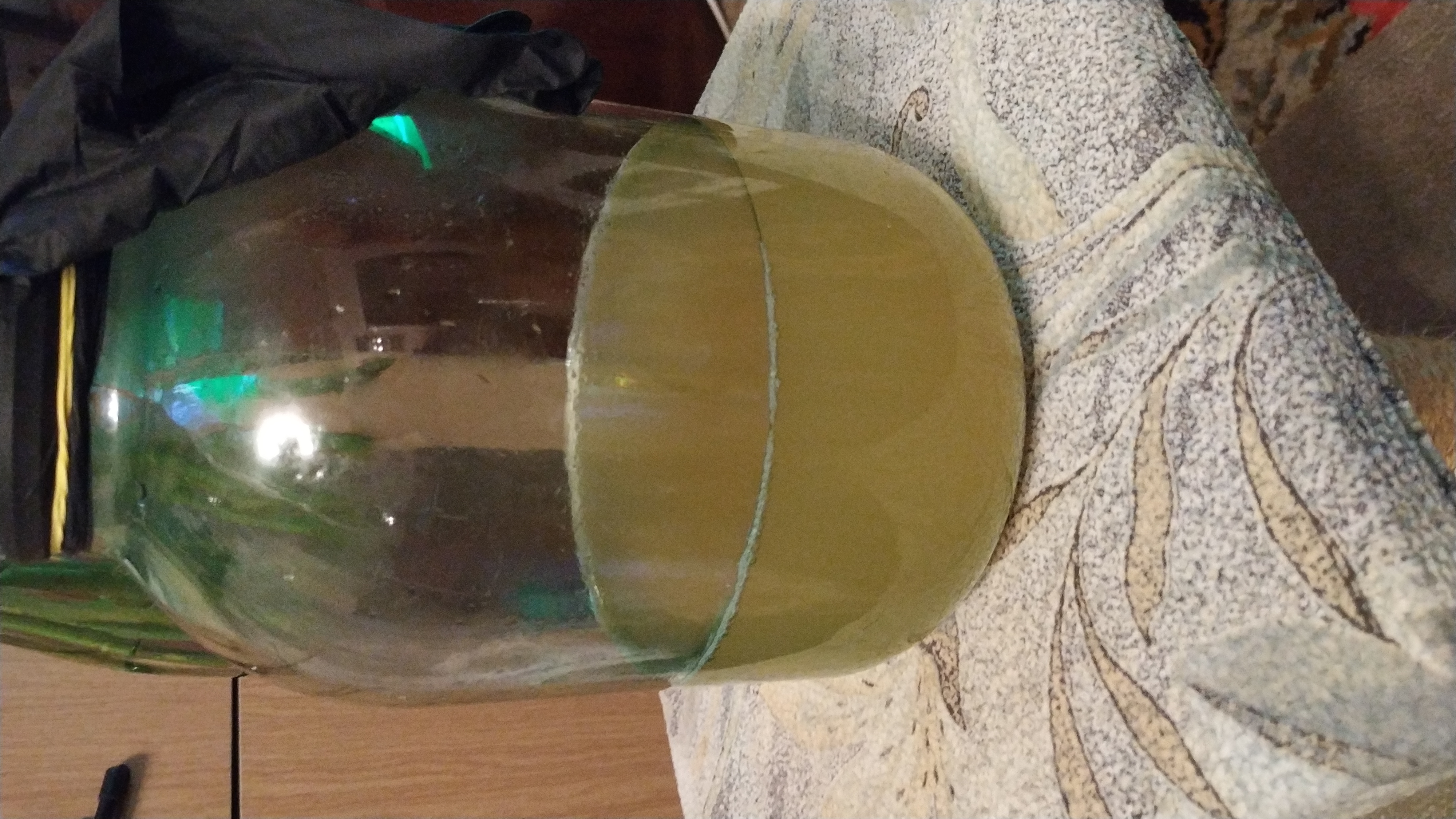 Переливал вино из кружки в бутылку с другим вином, чтобы сделать глинтвейн в выходные. Содержимое кружки - остатки, не вошедшие в бутылки для пастеризации. Сверху была тоненькая пленочка цвели, вино очень хорошо осветлилось и приятно пахло. Последние несколько миллилитров налил попробовать. Просто обалдеть какое вкусное и приятное вино получилось. Даже как-то жалко что я их смешал, но это всего 350мл. Теперь любопытно, перезапусти я процесс брожения после пастеризации, получилась бы вся партия такой.
