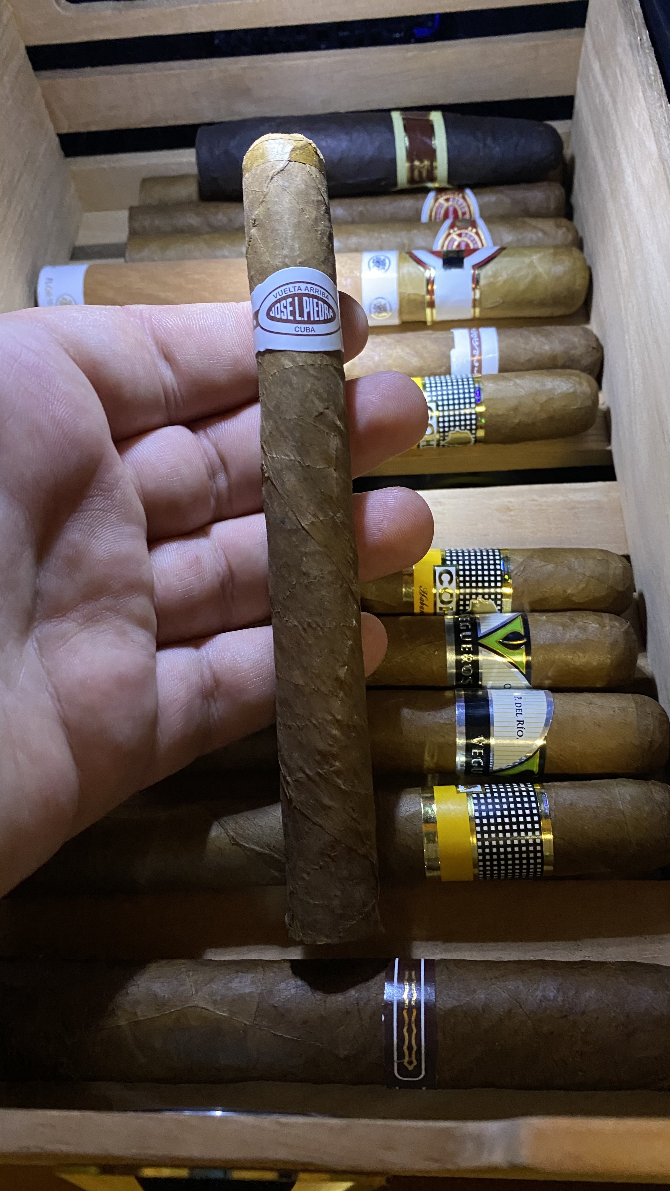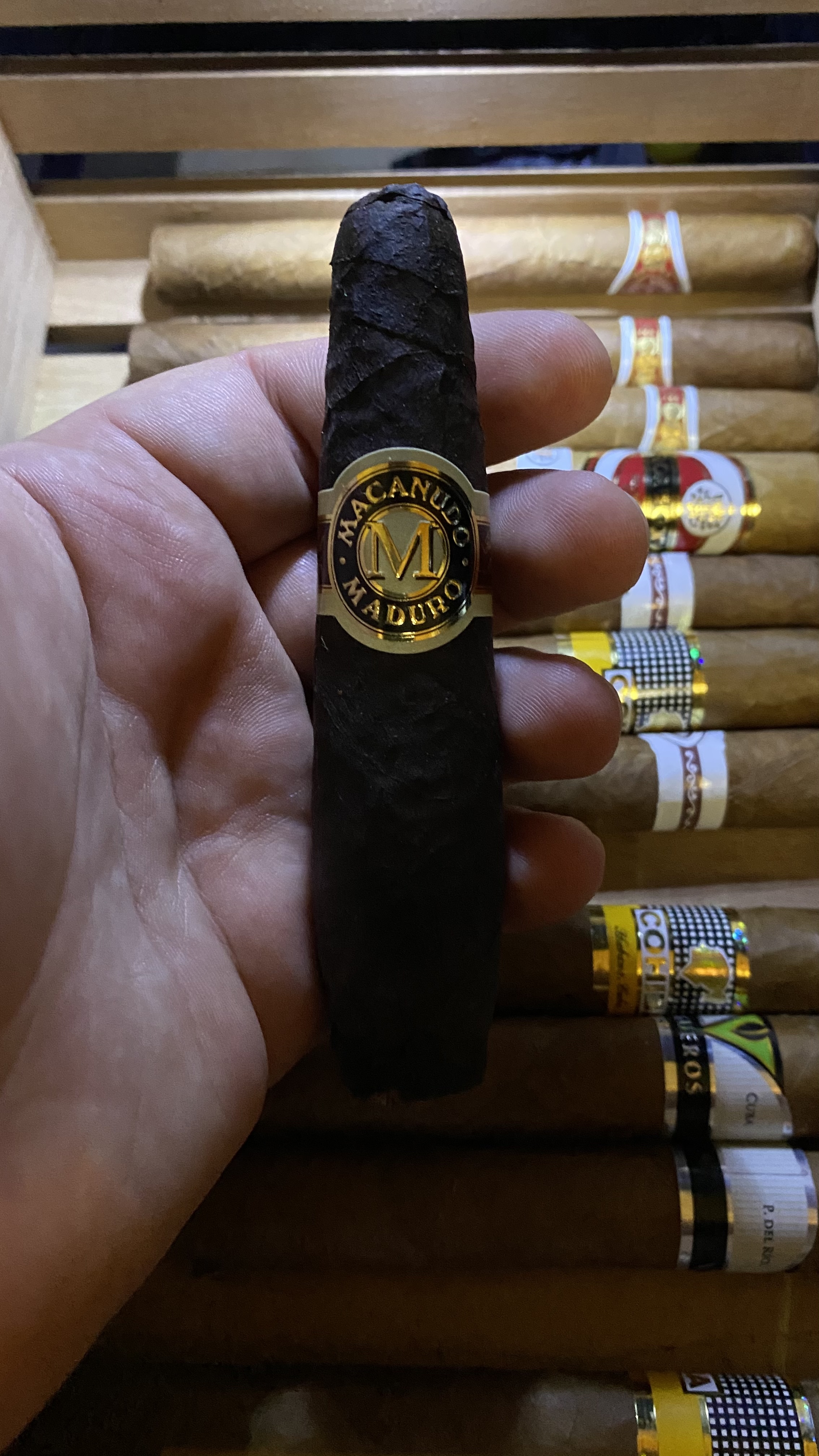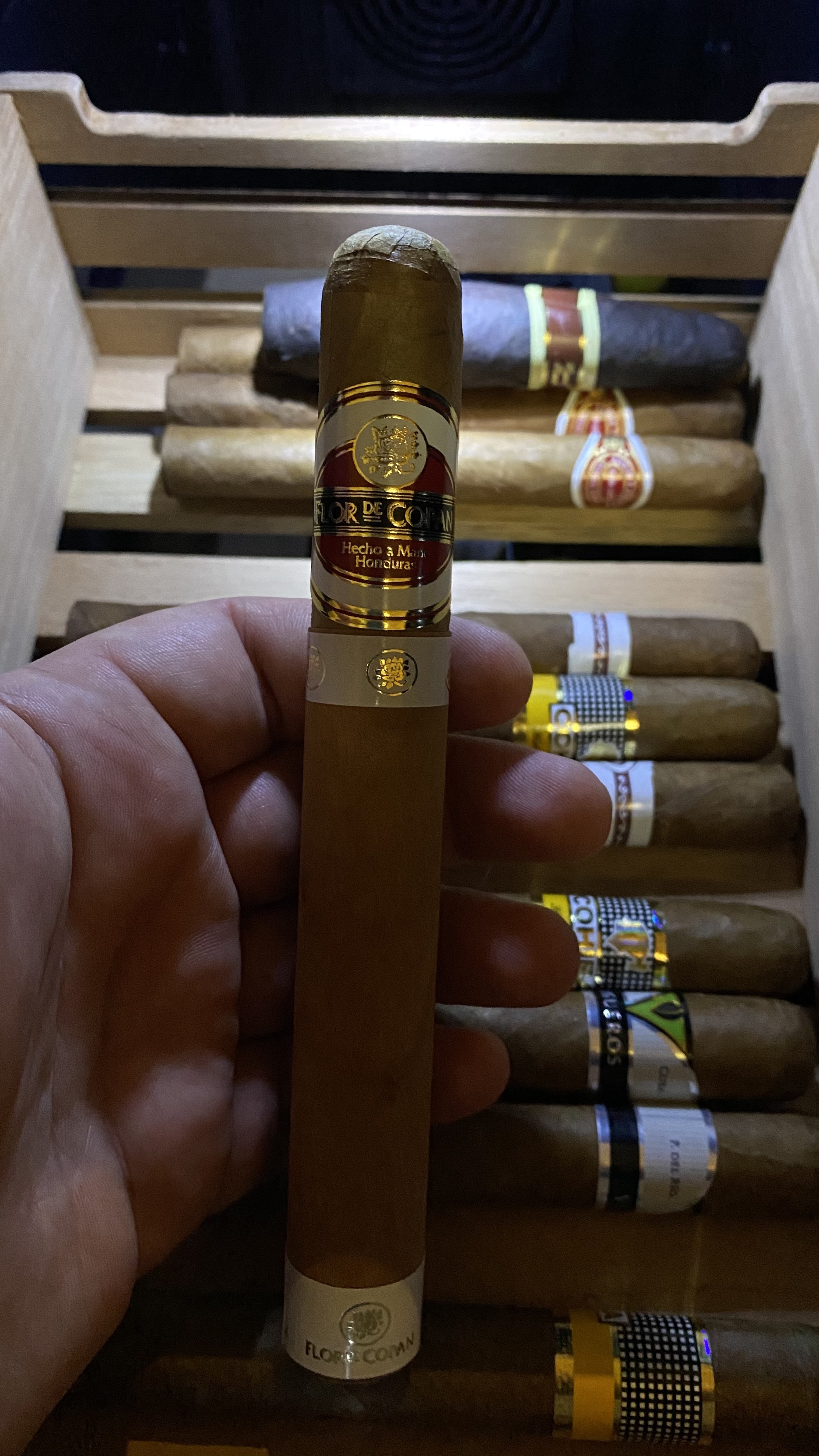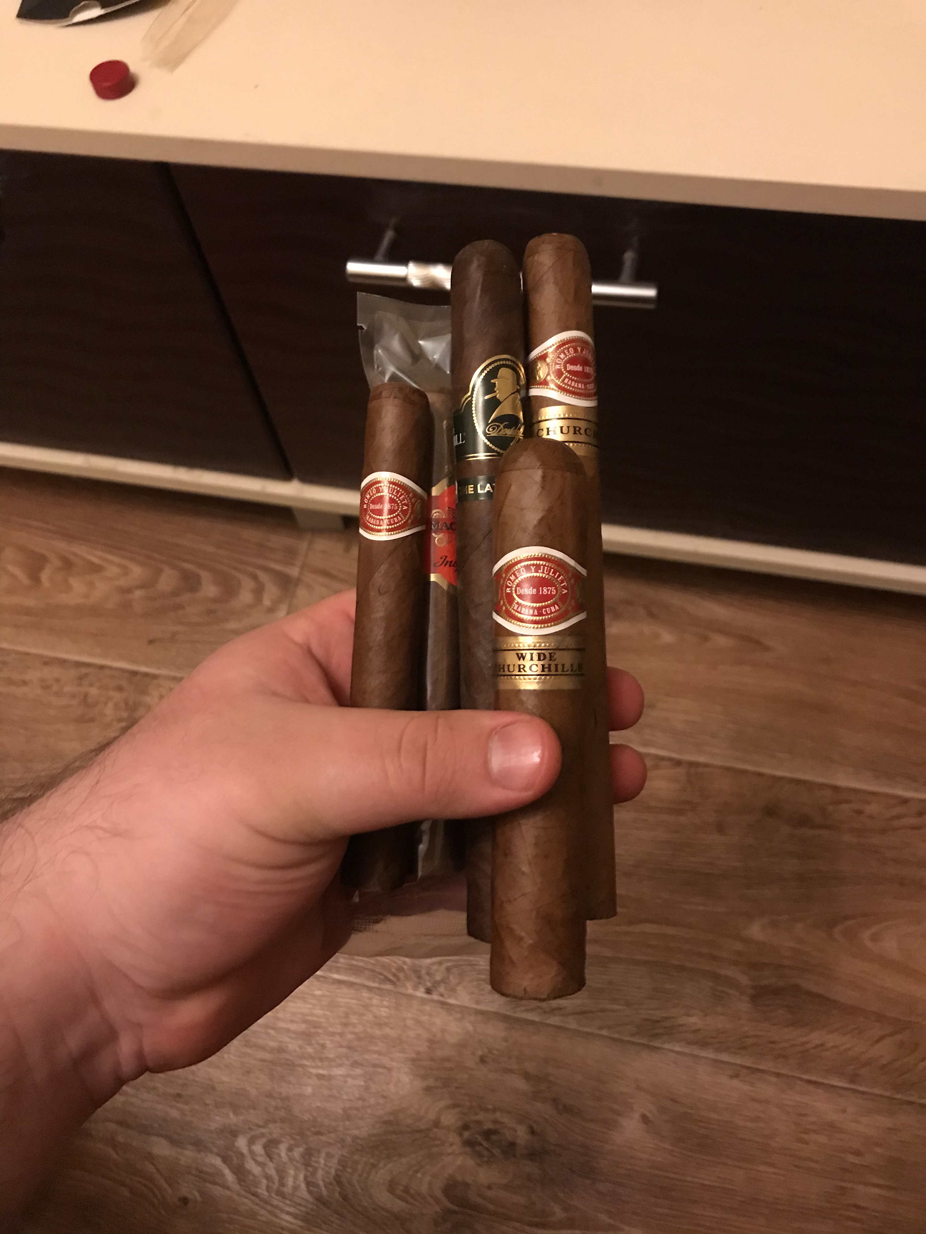 Кроме РиД №1 докупил ещё несколько сигар. Хосе Л Пьедро - никогда не пробовал, по идее тоже самое, что и Квинтеро, так как очень дешёвая Куба из рубленого табака, Вегерос - хорошая Куба из цельного листа, но без изысков, по крайней мере в этом формате, Маканудо Мадуро и Флор де Копан(Доминикана и Гондурас) раньше курил, +- норм, но у не куб всегда очень много ебаного перца, особенно после половины, на мой вкус. Выглядит они не очень, так как > мразь на продавщице плохо следила за влажностью/температурой, попробую месяц-три подержать сигары с этого закупа, должны восстановиться