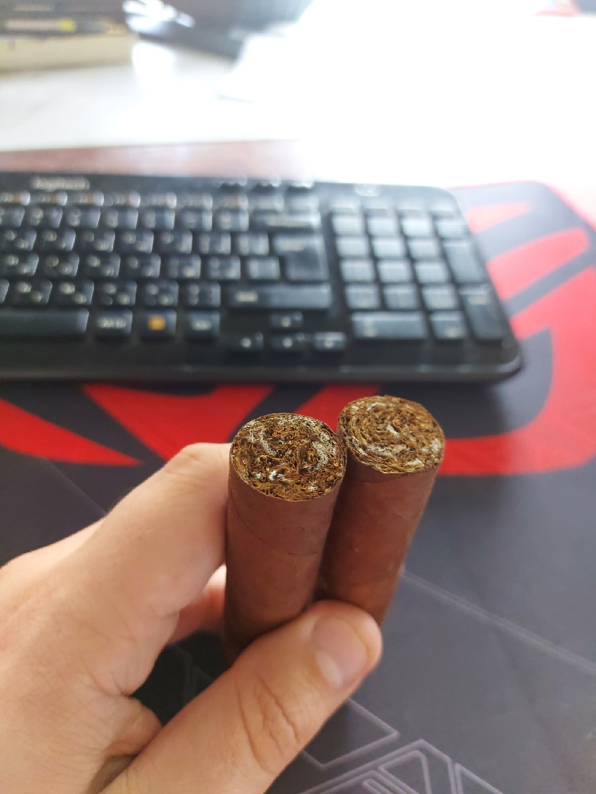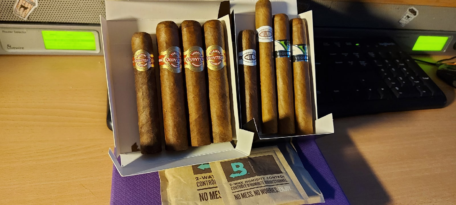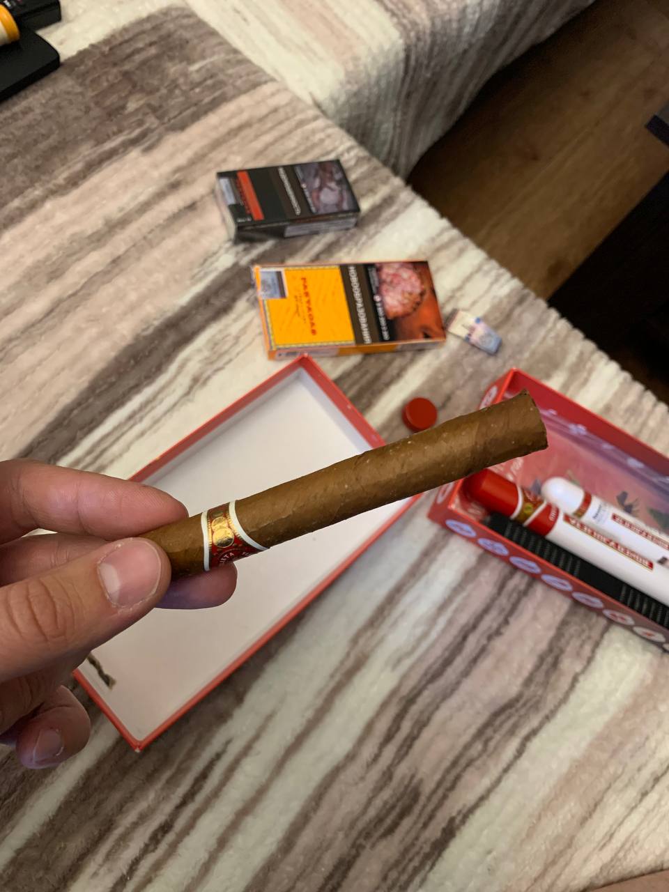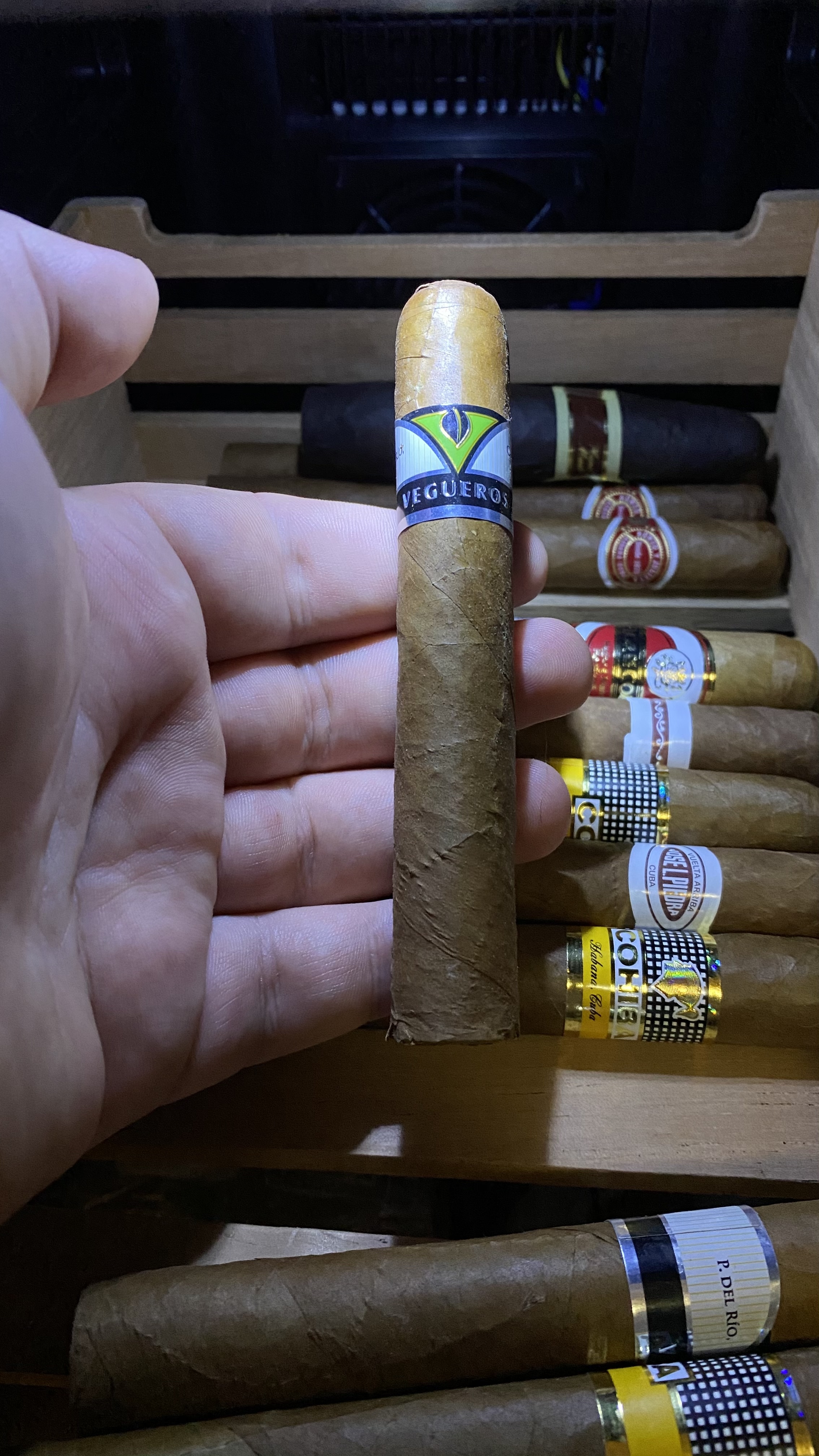 Кроме РиД №1 докупил ещё несколько сигар. Хосе Л Пьедро - никогда не пробовал, по идее тоже самое, что и Квинтеро, так как очень дешёвая Куба из рубленого табака, Вегерос - хорошая Куба из цельного листа, но без изысков, по крайней мере в этом формате, Маканудо Мадуро и Флор де Копан(Доминикана и Гондурас) раньше курил, +- норм, но у не куб всегда очень много ебаного перца, особенно после половины, на мой вкус. Выглядит они не очень, так как > мразь на продавщице плохо следила за влажностью/температурой, попробую месяц-три подержать сигары с этого закупа, должны восстановиться