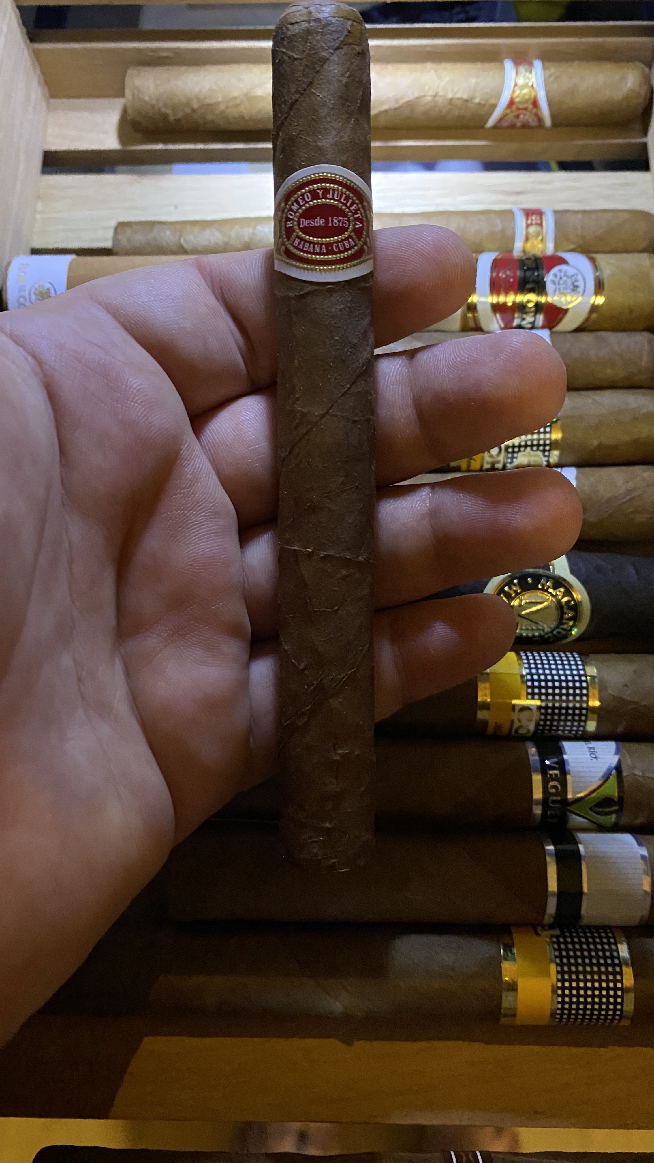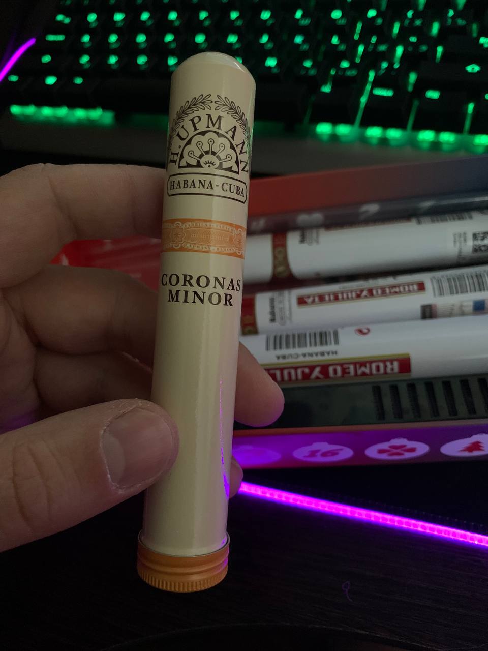 >>583210 >Я не дорос до них пока. Для меня они дороговаты, а из за миллиона их форматов не очень понятно с чего лучше начать. Начни с РиД(Ромео и Джульетта) №2. Она самая дешёвая из хороших кубиночек с цельным листом и формата петит корона. Небольшая, не дорогая, вкусная, поставляется в алюминиевых тубусах. Считается топом для сигаролиствинников. На пике №1, это формат корона, чуть длиннее №2, но смысл тот же. Этот вариант не особо красивый, потому что мразь на продавщице плохо следила за влажностью/температурой, попробую месяц-три подержать сигары с этого закупа, должны восстановиться.