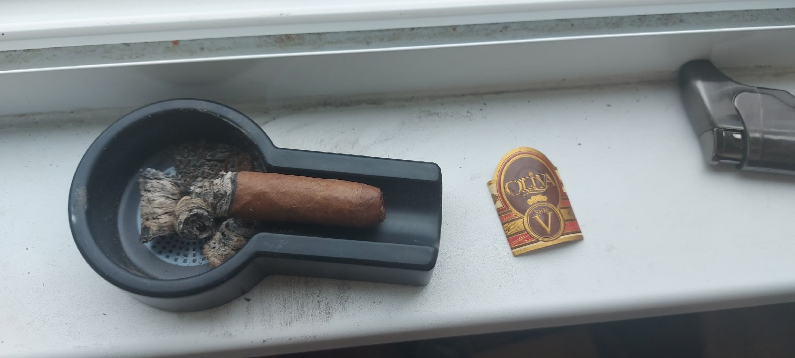 Заодно покажу сегодняшний прокур. Первый box-pressed который крую, Olivia serie G robusto - довольно линейная сигара, поменялась только в последней трети. Отличная тяга, вкусная, немного неровно подгорала, на твердую 4.3 по 5-тибальной