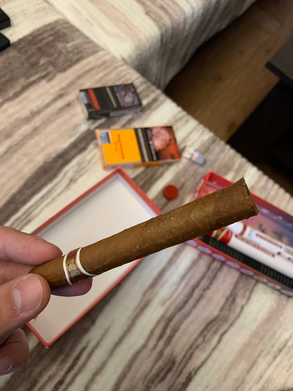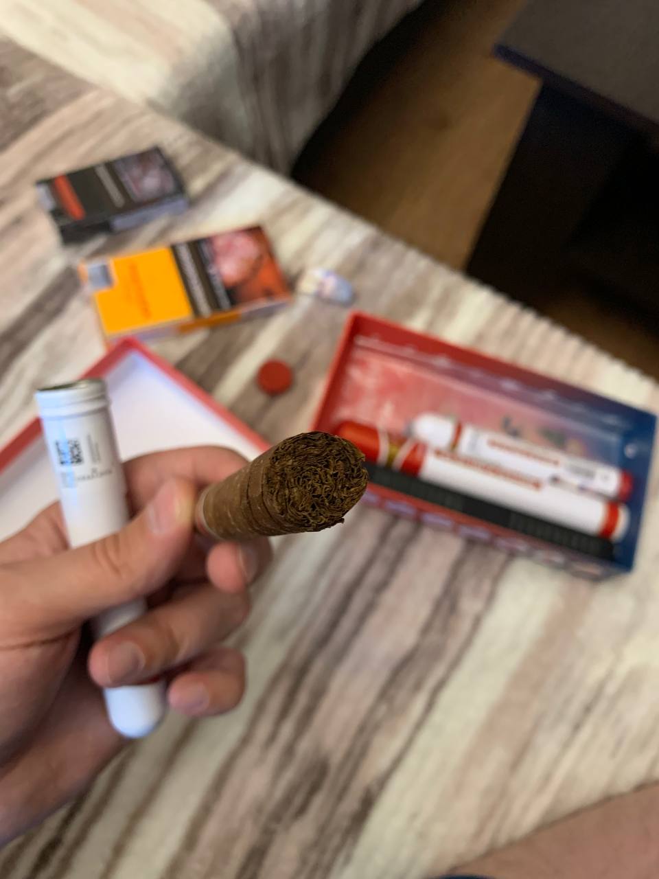 На тему влажности - все таки такое себе, особенно при заказе по интернету. да, туба по идее должна в себе влажность сдерживать, но иногда она это делает даже слишком хорошо ,и из нее сигара может быть с влажностью 70-75, что тоже на вкус и горение может негаитвно влиять.