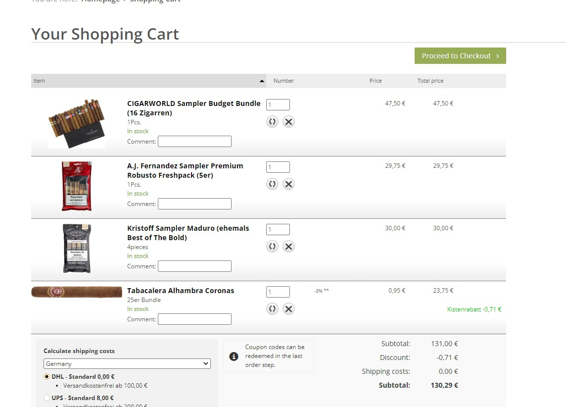 >>731666 По совету этого анона, заказал по первой ссылке 12 сигар в Казань. Все пришло в целости и сохранности. Так что можешь почекать, что есть в наличии.