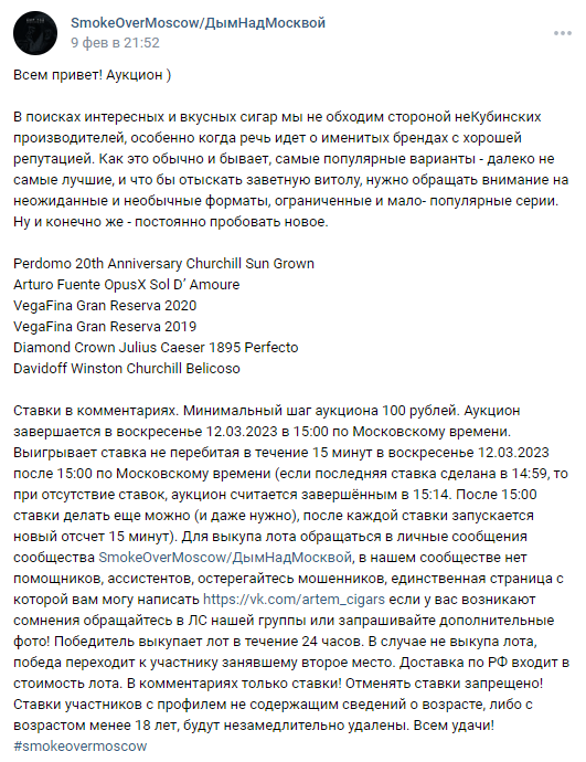 В текущих реалиях через кого лучше всего вкатываться в сигарный мир? Живу далеко от ДСов, брать в городе не вариант. Те прайсы барыг что находил, больше ориентированы на искушенную публику, от 2-3к за сигару, мне бы в пределах 1к-1.5к за штуку на пробу. На форумах нашел вроде не плохой магазин с доставкой cigarday.ru ценник компромиссный, но хоть отзывы положительные. Может быть есть альтернативы или конкретные прайсы барыг? Из треда похоже остался fox(вк нет, не могу достучаться) и ДымНадМосквой(дорогобохато).