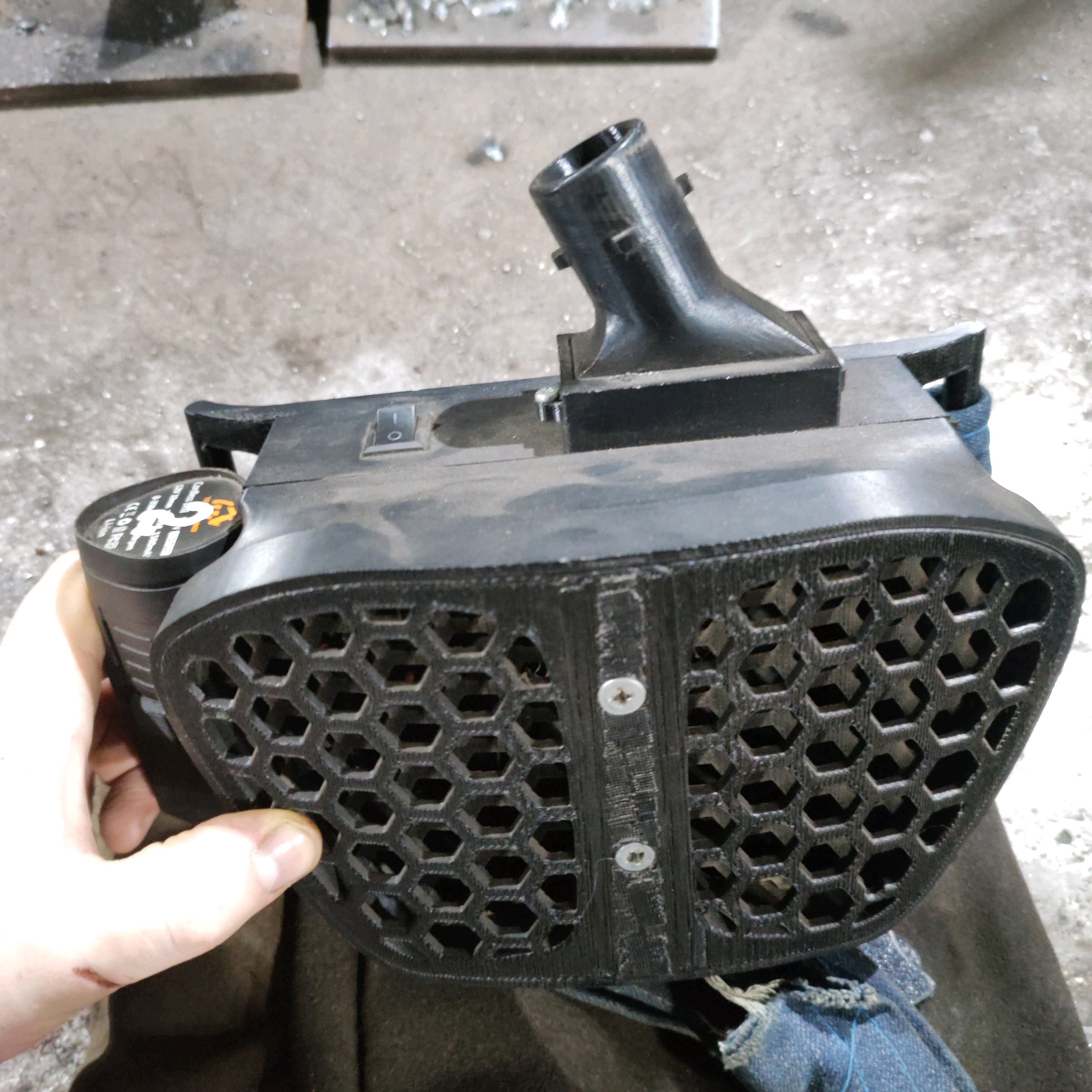 >>817627 Ну вот эта >>817591 херня - мое спасение летом. В тридцатку, да при влажности, варить в цеху это пиздос как не весело. С этой штукой куда легче переснести было, а делов не хер. Я ее нарисовал где-то через месяцок корявых тыков мышкой во фьюжн360. Там внутри тупо улитка, кнопка и чуток проводов до аккумулятора на 12в.