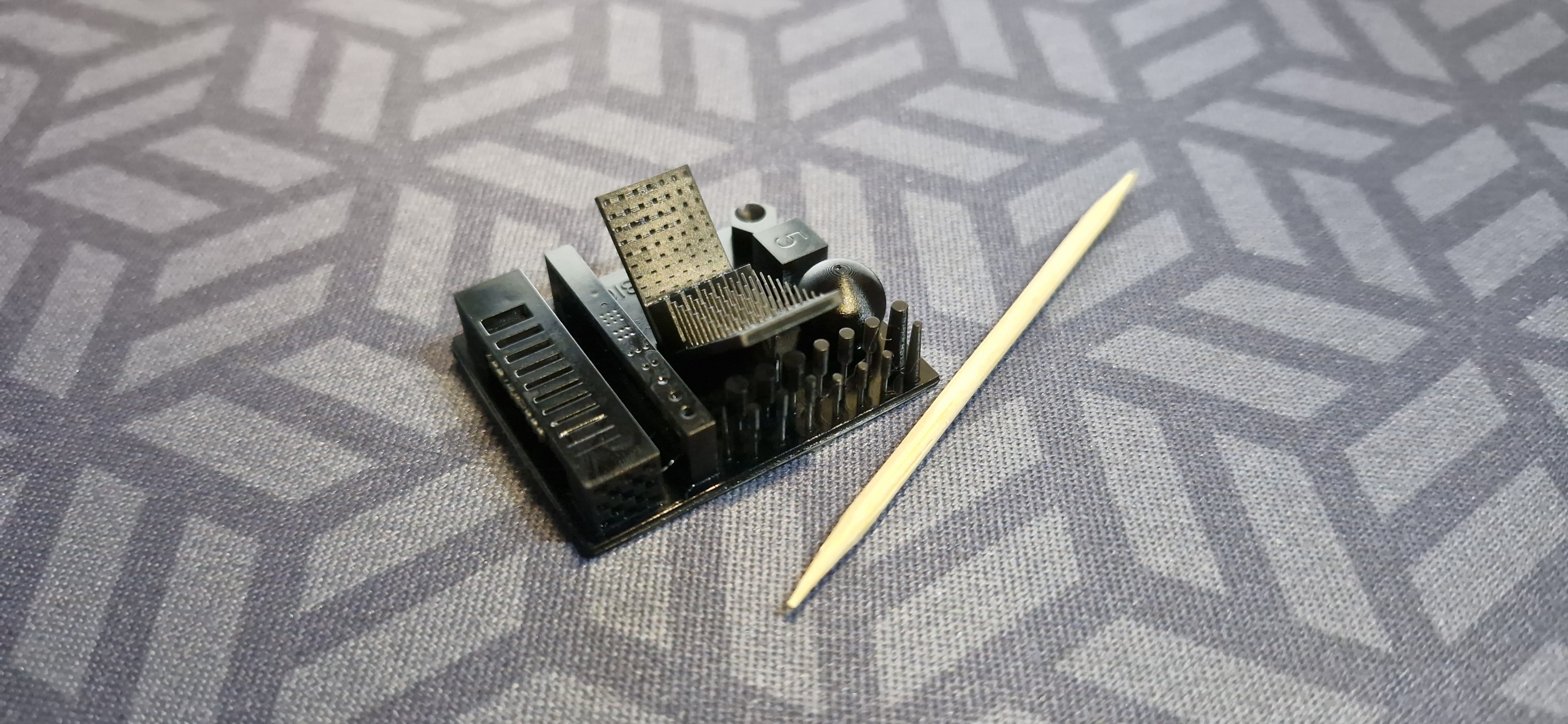 Наконец приехал мой фотон моно, сделал первый отпечаток. Даже на дефолтных настройках все довольно хорошо отпечаталось, порадовало. Cушил под ультрафиолетовой лампой для ногтей с алика, на каждую сторону минут по 15, но отпечатки всё равно слегка липкие. Это я плохо в спирте промыл их?