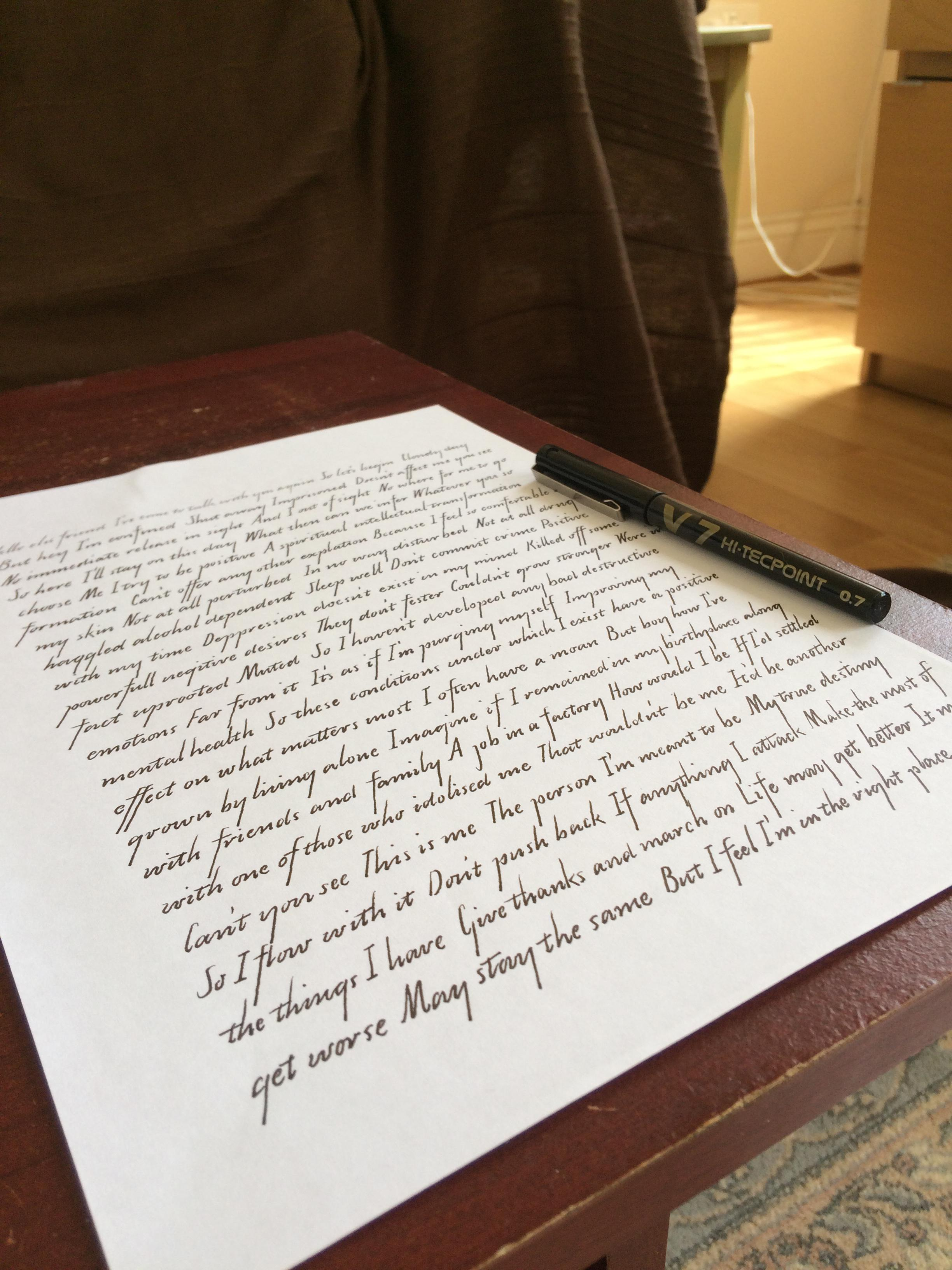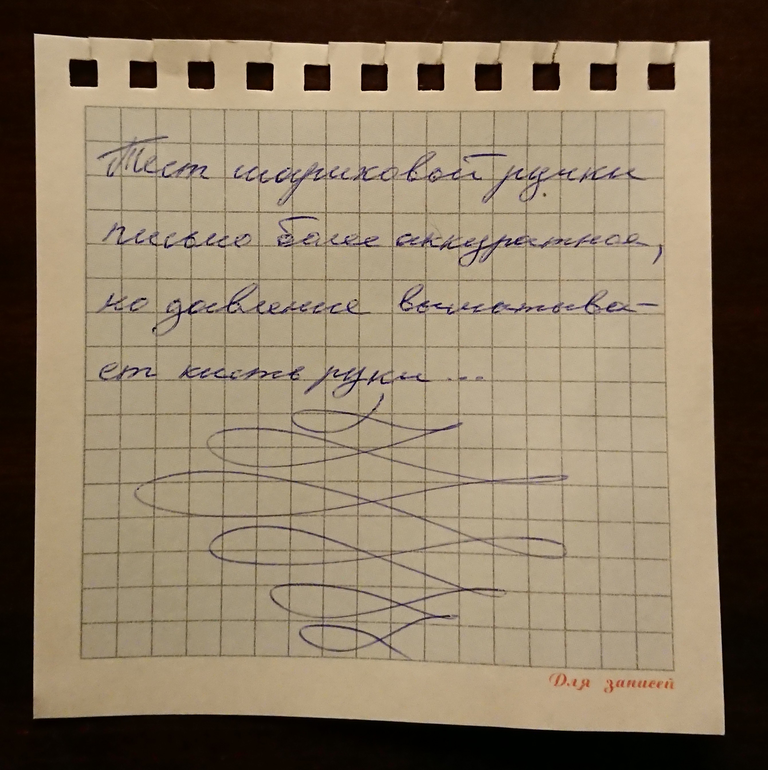 >>757878 Для сравнения, обычная шариковая ручка. Очень сильно давить приходится, линия лишена цвета практически и рука устаёт. Но благодаря тому что не нужно держать перо в одном положении контролировать почерк легче.