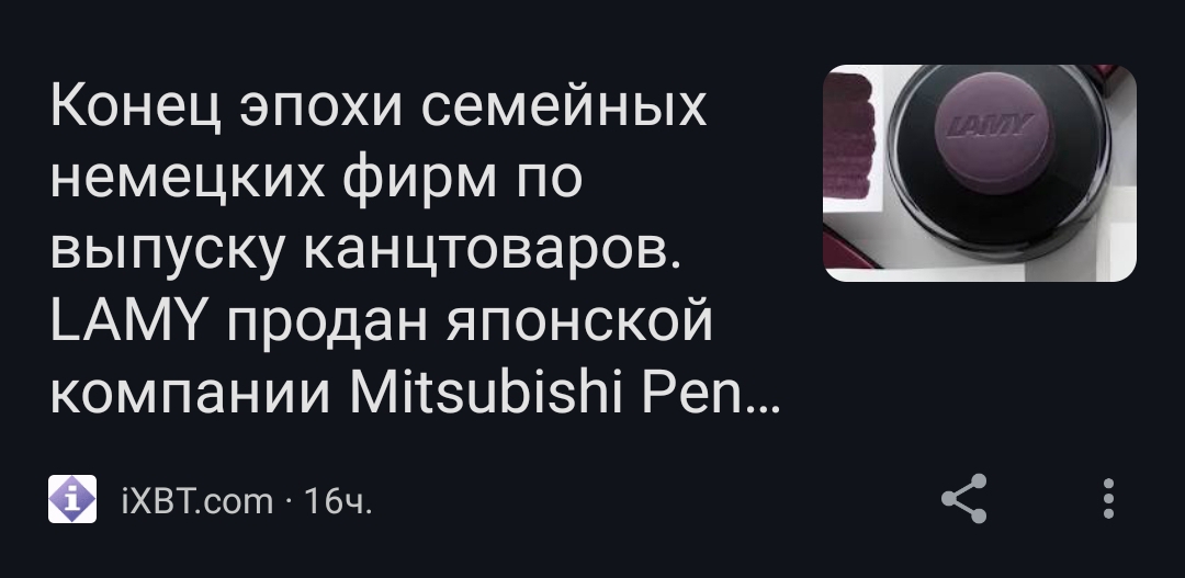 >>757790 Да, реально. Пару лет назад бутылку в комплект к чернильнице на 70 мл докупил, чтобы не ждать доставку когда закончится. А недавно заходил на али посмотреть новинки канцелярии - и как-то грустно стало.