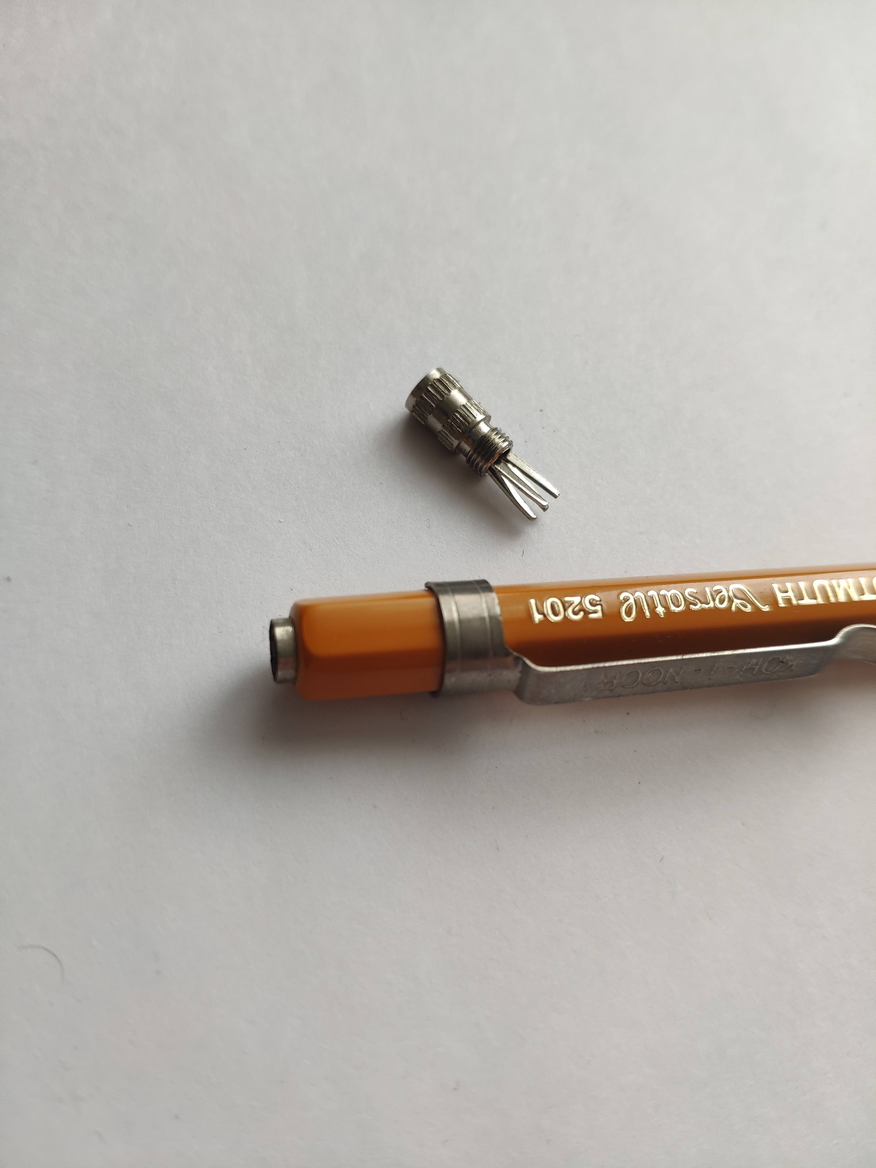 И вот для этой роли шикарно подходит пилотовская шариковая ручка. Самый каеф в том, что ей уже хз сколько лет. Она там появилась раньше меня. Вся старая, убитая и убогая. Но оставляет очень тоненькую линию, а это мне и нужно для меток. Перьевые тут я использовать не хочу, потому что метки ставятся по стальной линейке, не хочу боковой частью пира точить его об линейку.