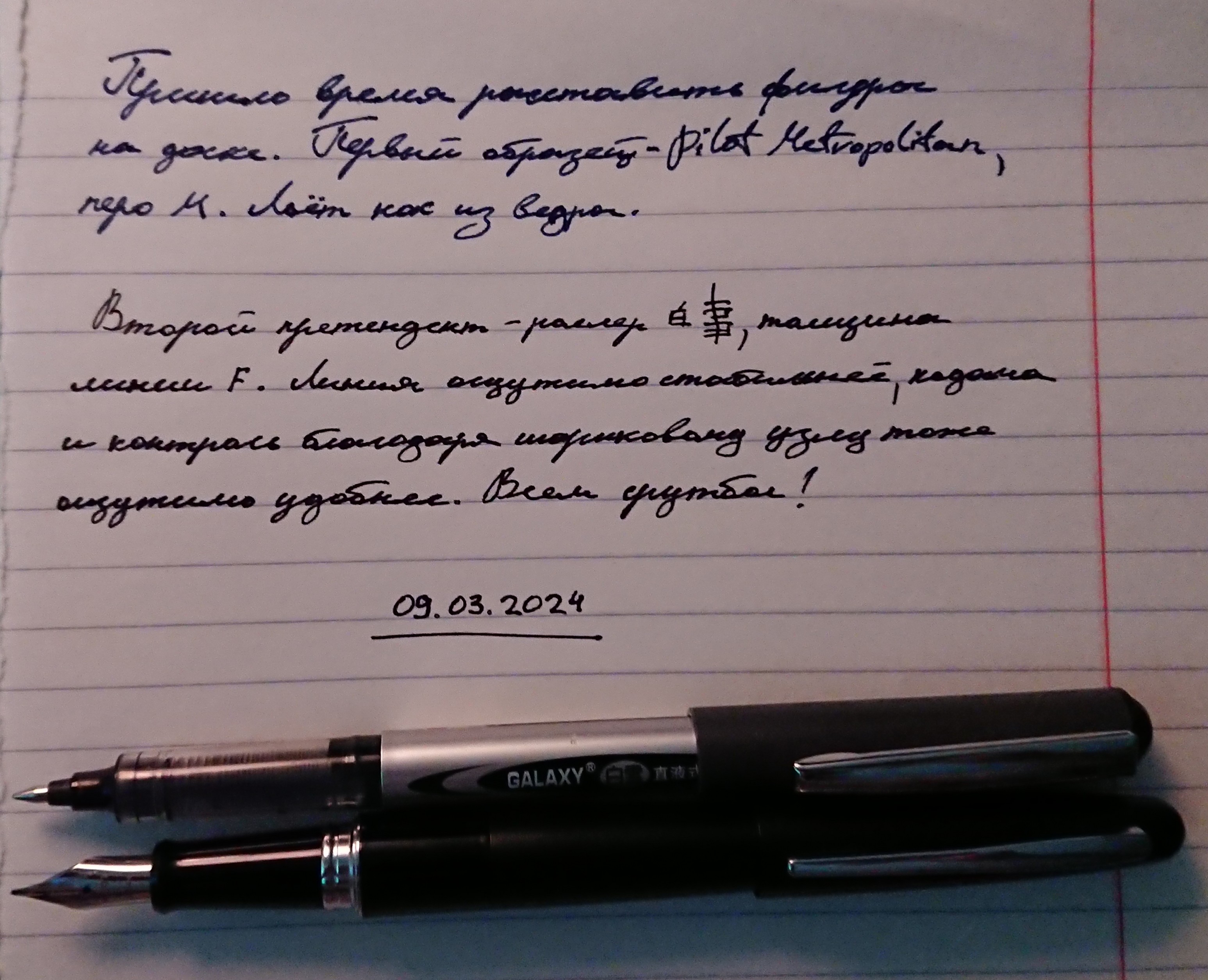 Все еще считаю, что для вката в перья ничего лучше Метро с перезаправкой картриджей нет. Если много пишешь, просто покупаешь запасную. Это решает абсолютно все проблемы: и с дерьмовой бумагой, и с тонкими линиями, и с недостаточной емкостью, и с надежностью.