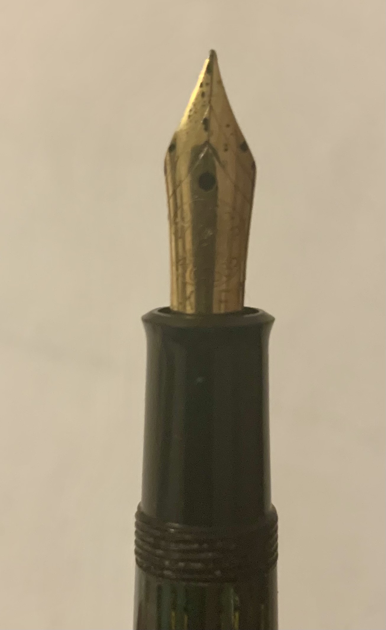 >>762976 Ну во-первых, это практично. Такое перо будет меньше сохнуть даже если надолго оставить без колпачка, ручку можно держать как удобно пальцам а не за середину корпуса из-за здоровенного пера, при заправке из банки ты сможешь использовать чернила до конца, а не открывать новую когда старая наполовину опустеет и огромное перо уже не сможет погрузиться в банку. А во-вторых, такие перья сравнительно надёжнее и выглядят скромнее. Ничего не торчит, никакой позолоты и гравировок - просто надёжный и функциональный письменный прибор.