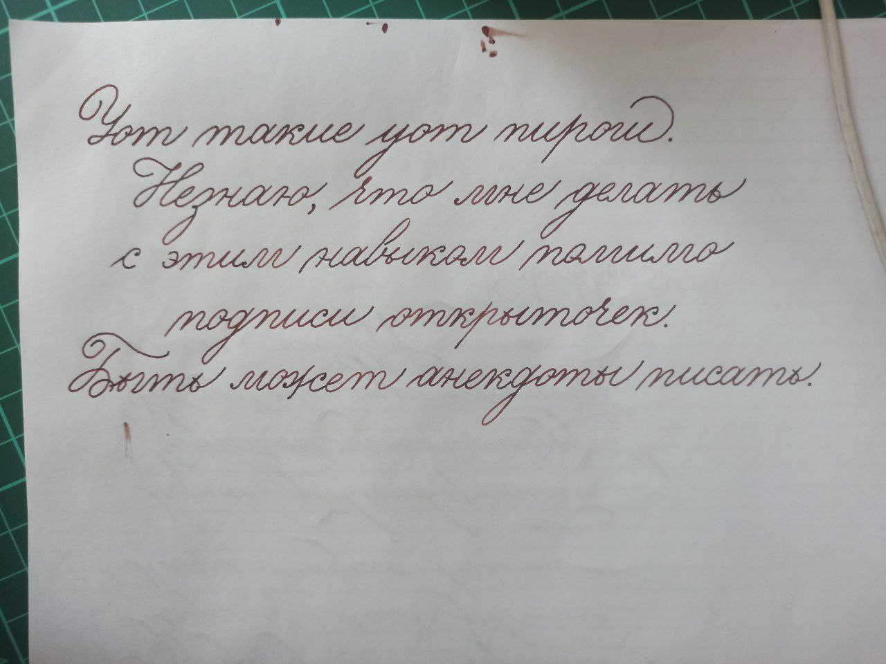 >>757879 Как же горестно быть унтером с хуевым почерком. Потеешь-потеешь, а всё равно у людей которые никак не развивали свой почерк он выглядит пизже, даже если они пишут шариковой ручкой за 10р. It's over.