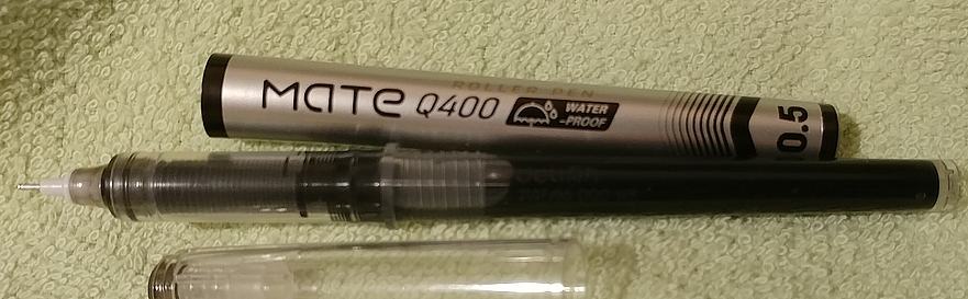 Если писать оочень медленно, тогда толщина более-менее и выравнивается с моим роллером 0.5мм. Но не то всё равно. Попробую завтра чернила Пилот залить, авось поможет, они текучие.