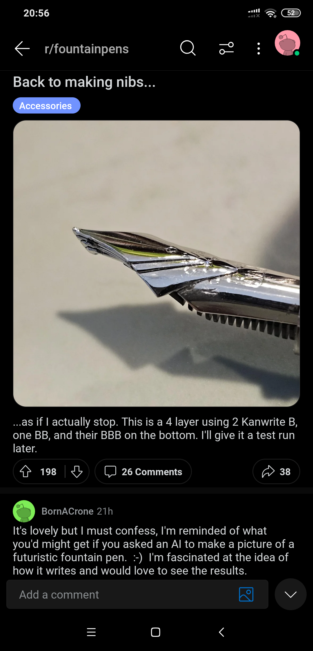 Был в шаге от покупки Какуны. Но блядь, смотрю на то, как в роллере за все это время не убавилось чернил и понимаю, что ручка в итоге будет просто валяться. Мне нравится эстетика перьевых ручек, письма и блокнотиков, но это настолько непрактично, что я ебал. Прям вот по делу мне нужен только роллер и раз в год линер, чтоб подписать что-то.