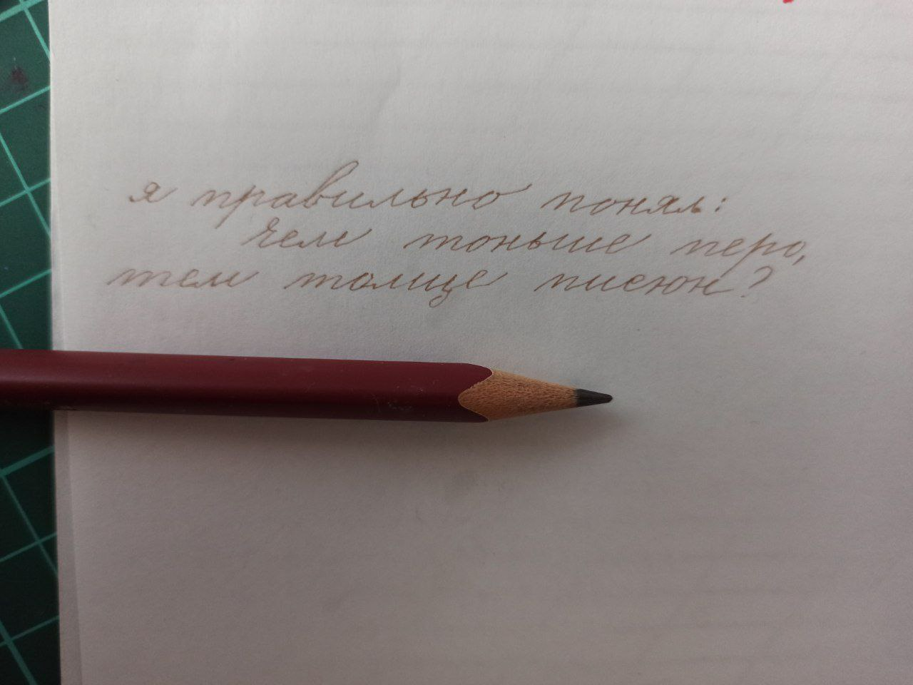 Докладываю. Получил малевича. Все зашибись, кроме говеного пера. Пишет тонко, подача обильная, но при боковом движении скрежещет - цепляет бумагу. Короч нифига не гладкое и писать им, конечно, я не буду.