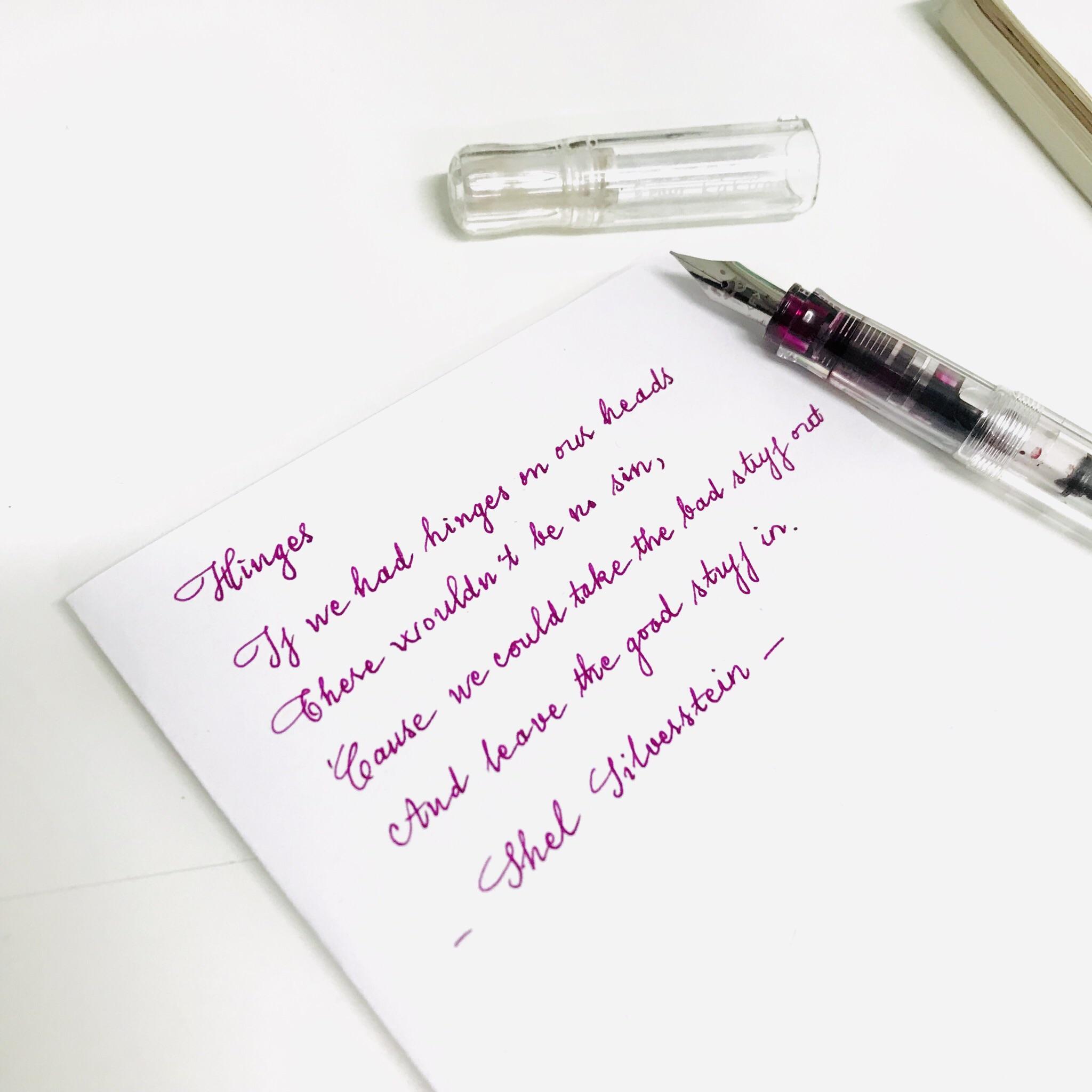Вот тут Какуна с таким же пером и чернилами от Хербин пишет жырно, а моя какую-то херню тоненькую выдает (>>762680 Завтра попробую пилотовские картриджи, мб станет толще. Если цвет не зайдет, придется брать М перо, чтобы компенсировать утончение из-за чернил