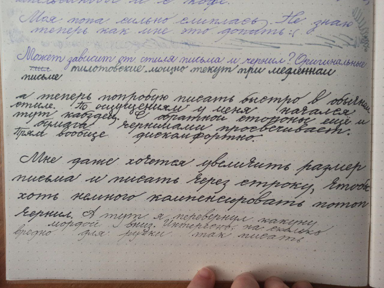 Заправил Пилотовские чернила — пишет так же тонко. Ну пиздец обидно, месяц ждал, чтобы получить говно пишущее тоньше чем EF. Теперь если М заказать — с высокой вероятностью получу слишком жирное перо, т.к в норме из М льет сильно.