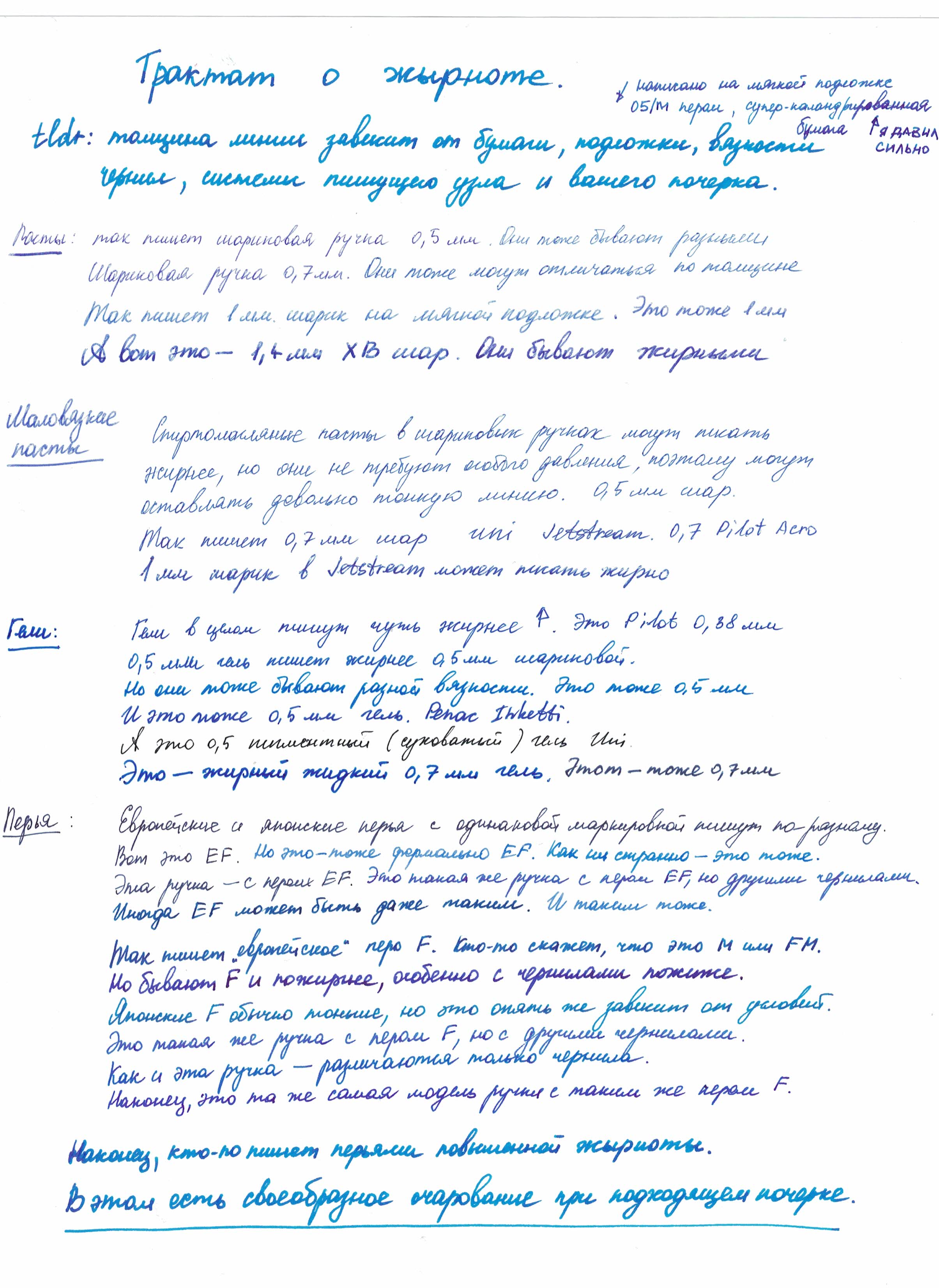 >>762811 Да они все говно,брендовых тоже ведро перепробовал. Только руки от стресса начнут потеть или просто бумага плохая - всё, пропуски и отказы. Перо же пишет в любых условиях. И да, М - ЖЫРНО, с мелким и быстрым почерком максимум 0,5 надо, а лучше 0,3.