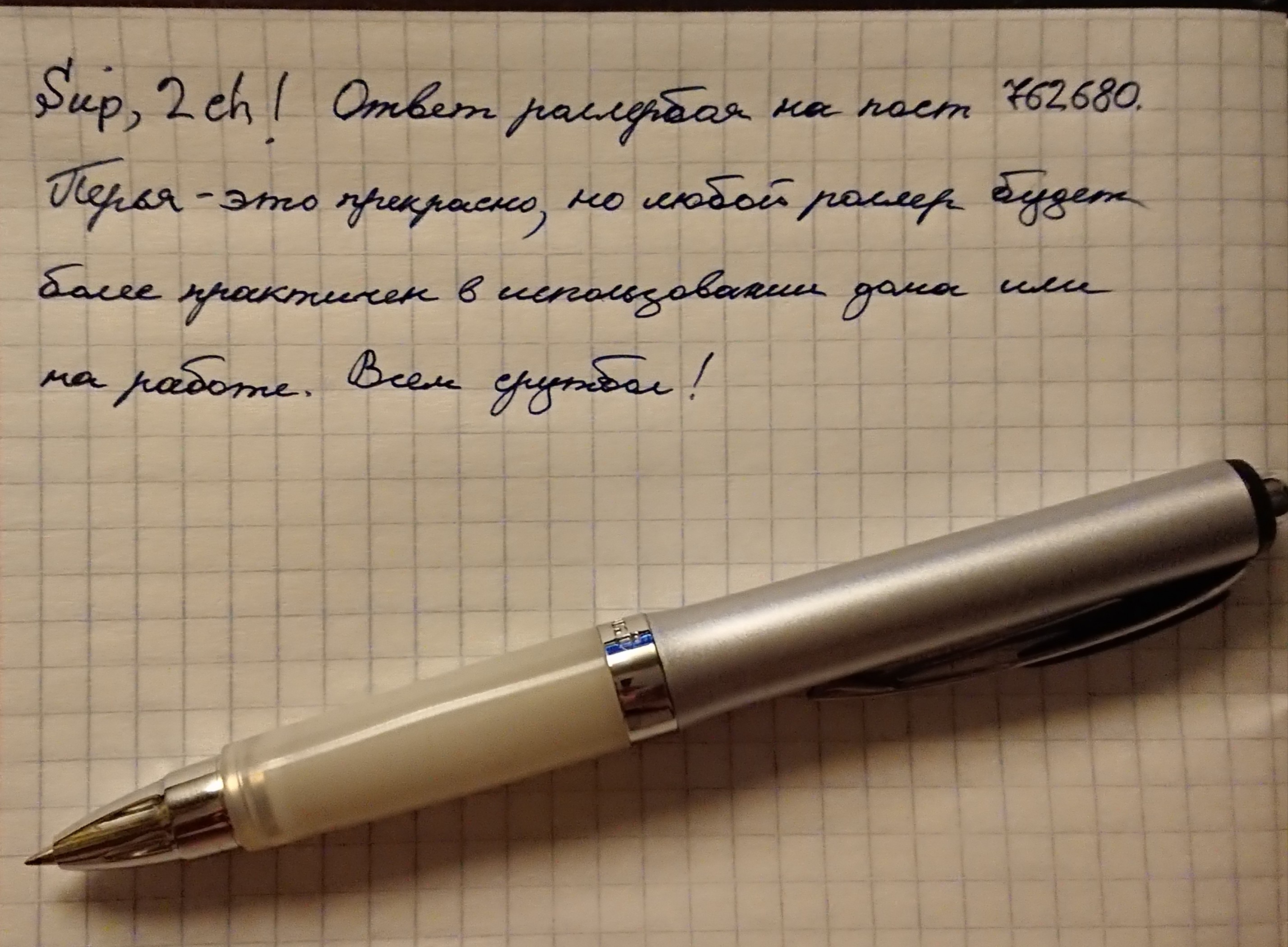 >>762752 >Обычно подбирают ручку под бумагу Ебаный рот...