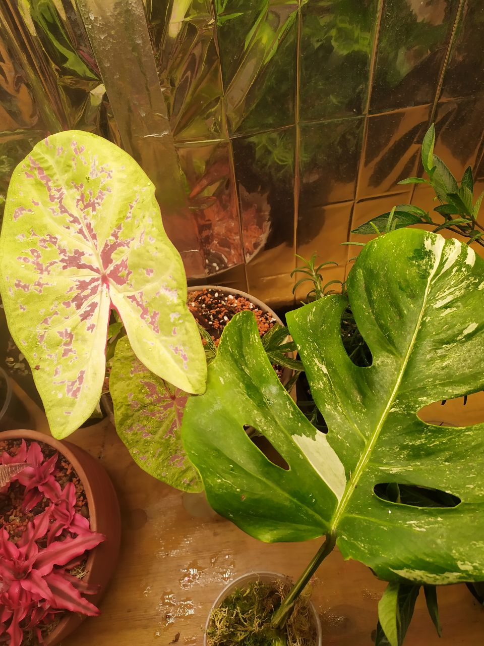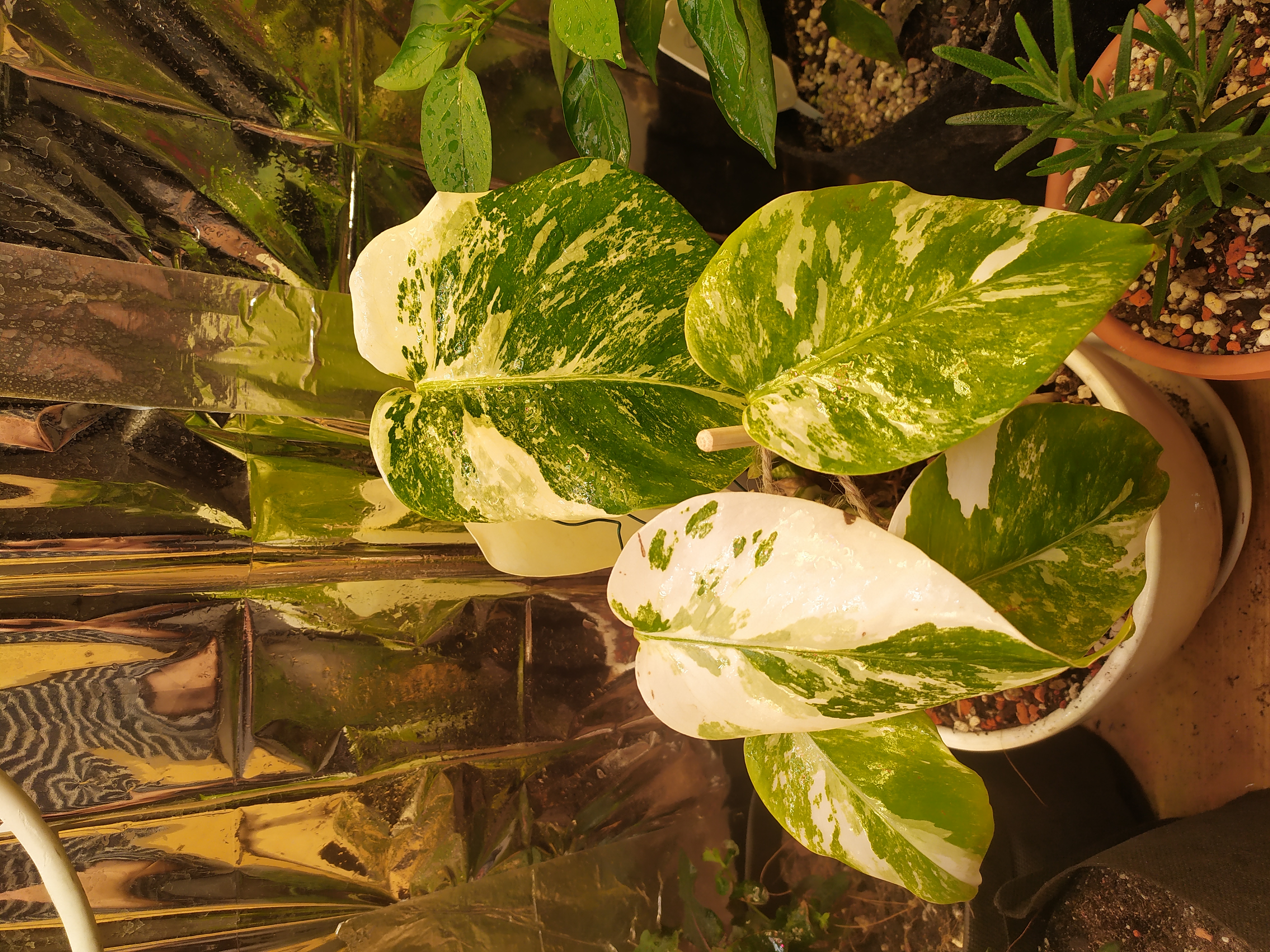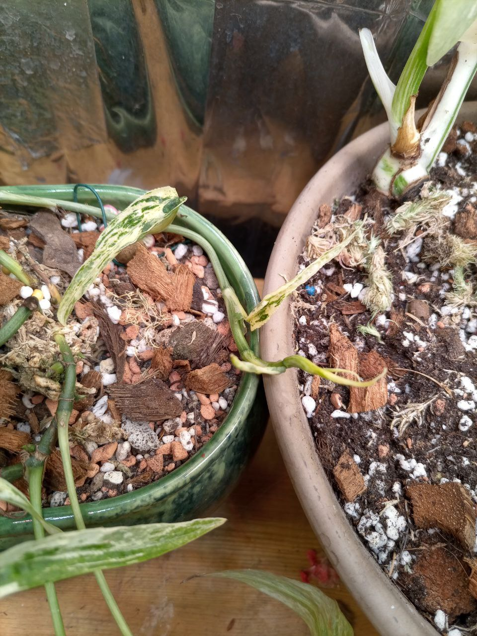 Фактически я их перезапустил после околоебланского осенне-зимнего периода (благо я их лишь опрыскивал по листу и по поверхности горшка, а не заливал- корней порченых почти не было при пересадке) а так же неебического светового стресса по своей дурости и незнанию - была неделя солнечной ясной тёплой погоды и я их поставил на юго-западное окно, где их дня 3 пару часов жарило прямое солнышко (выдавая 30к люкс согласно замерам смартфоном). Итог - одна растюха получила краевые ожоги листвы, привявший кончик нового листа, который вот только начала растить, лист побагровел дабы защититься от такого избытка счастья. На другой получил ожог малого листа в виде ярко-жёлтого пятна с выступившей сетчатой структурой. И почти угробил миньку, которую отправил в стеклянный стакан на реанимацию. На одной даже лист начал хлорофилл отбеливать под нейтронную звезду бы ещё подставил, ага. Но при этом тургор листьев сохранили. В общем- легко отделался.