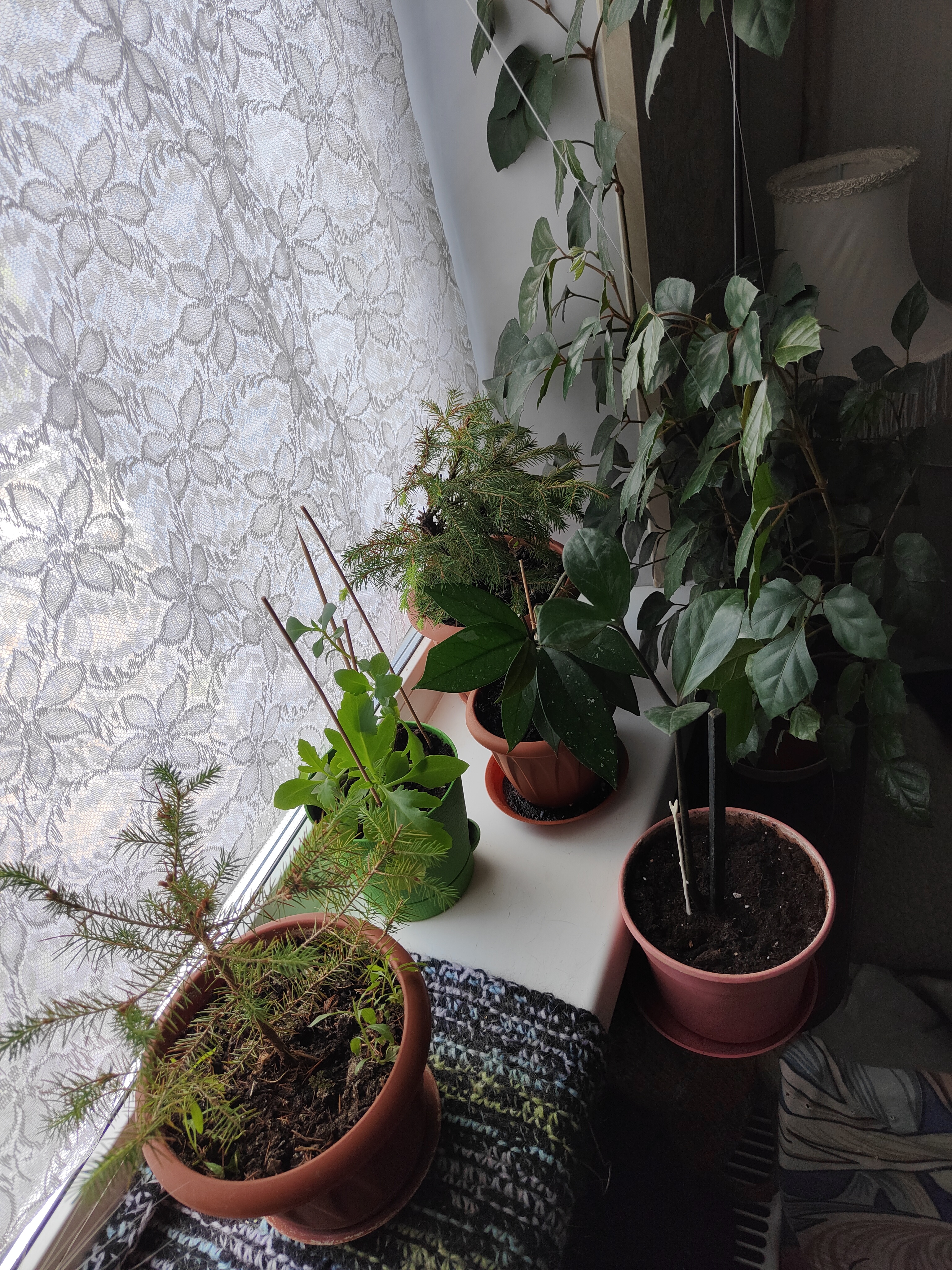 Как и обещал, показывваю свой скромный уголок. Сфоткал так. Расстановка не совсем такая, ёлки в другой комнате стоят. Цисуус - здоровая берёза, хуярит пиздец. Всем советую! Хойя - год стояла с тремя листами, а за последний месяц ебанула в рост, вырастила ещё столько же и начинает уже полноценно новый ствол или как это называется. Если она так продолжит, то я понятия не имею, куда её ставить, места для второй лианы просто нет, скорее всего уберу от окна, поставлю возле пеке, чтоб она буквально надо мной тянулась к окну, ну это если конечно он продолжит расти, не загадываю. Каланхоэ - капуста в зелёном горшке. Ой блять, сколько же с ней приключений. Я по идее её постил. Уже года два минимум растёт, сколько же раз блять оно ломалось, не сосчитать. То сама себя об проволку тонюсенькую (это я подвязку такую умную сделал) разрезала, то я её хотел перенести и она просто сломалось,э, пятое десятоея, так бесконечное количество раз. Каждый раз половина разнообразными способами выживал, продолжала расти и вот сейчас осталось это. Никому не советую. Замиокулькас - забрал совсем недавно у матери, высокая малютка, может вырастит, будет прикольно, места опять же нету. Ёлки - ну вот и они. Сколько им там, два года с момента притаскивания домой вроде. Как и писал, жёстко обосрался - ебаный балкон превратился по необъяснимым для меня причинам в баню нахуй (это месяца полтора назад, жары не было) и они начали засыхать. Экстренно убрал их оттуда, обрезал и вроде бы живы. Новые хвоинки немножко дали. Ближняя почти не пострадала, но новых веток не будет, по крайней мере сейчас, дальняя поредела на половину, но так как она старше, то новые хвоинки появились только сейчас, так что она обрастёт чуть чуть точно. Что я с ними делать в принципе буду понятия не имею. Наверно дальнюю обрезать, чтоб она была этаким недобансаем, а ближнюю слегкая пусть блять дерево нахуй растёт в квартире, буду крутой, главное чтоб всякий жучки ядовитые не появились, но я обрабатываю вот.
