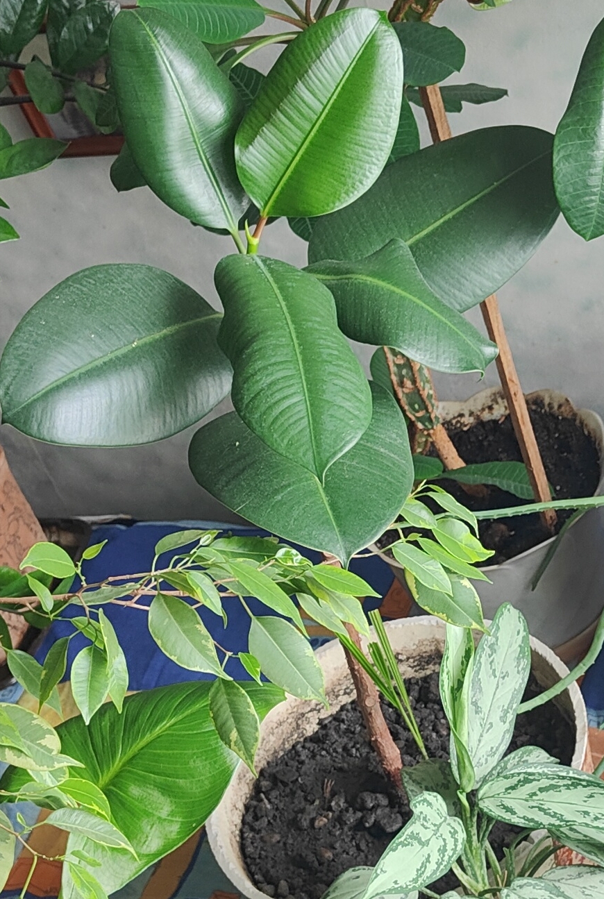 Заметил у тебя пикрил: https://ru.wikipedia.org/wiki/Фикус_каучуконосный Он у тебя здоровый, в порядке, но растёт палкой. Рекомендую срезать верхушку (посадить отдельно, укореняется быстро), чтобы он начал отращивать боковые побеги. Затем прищипывать уже боковые побеги, когда на них будет несколько листьев. Так получится пышный кустарник. В противном случае продолжит расти длинной голой палкой, сбрасывая старые листья и не пуская боковых побегов, потому что это дерево высотой до 30-40 метров, лол.