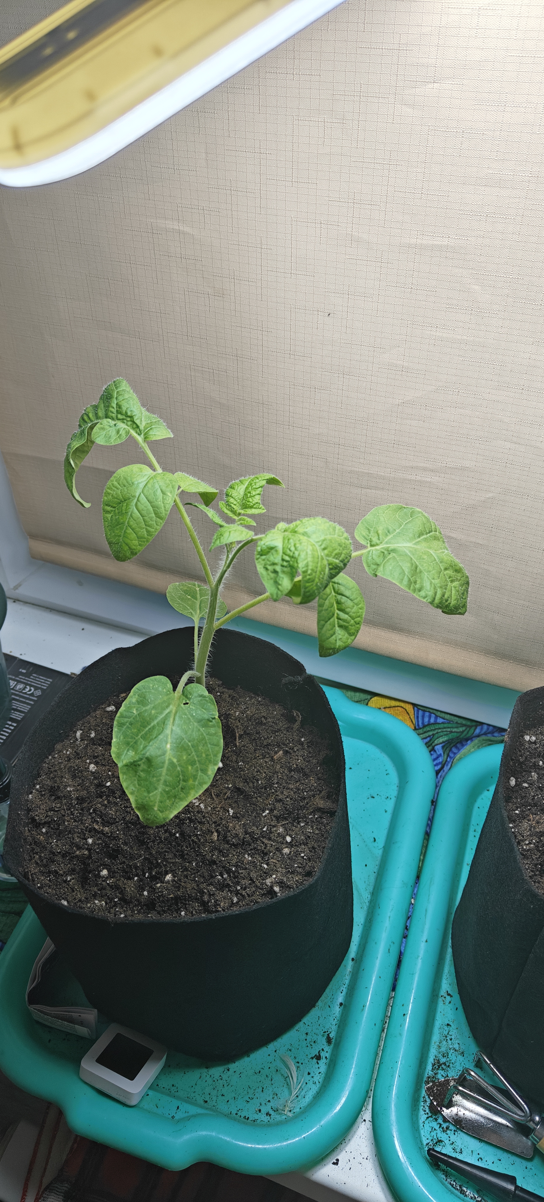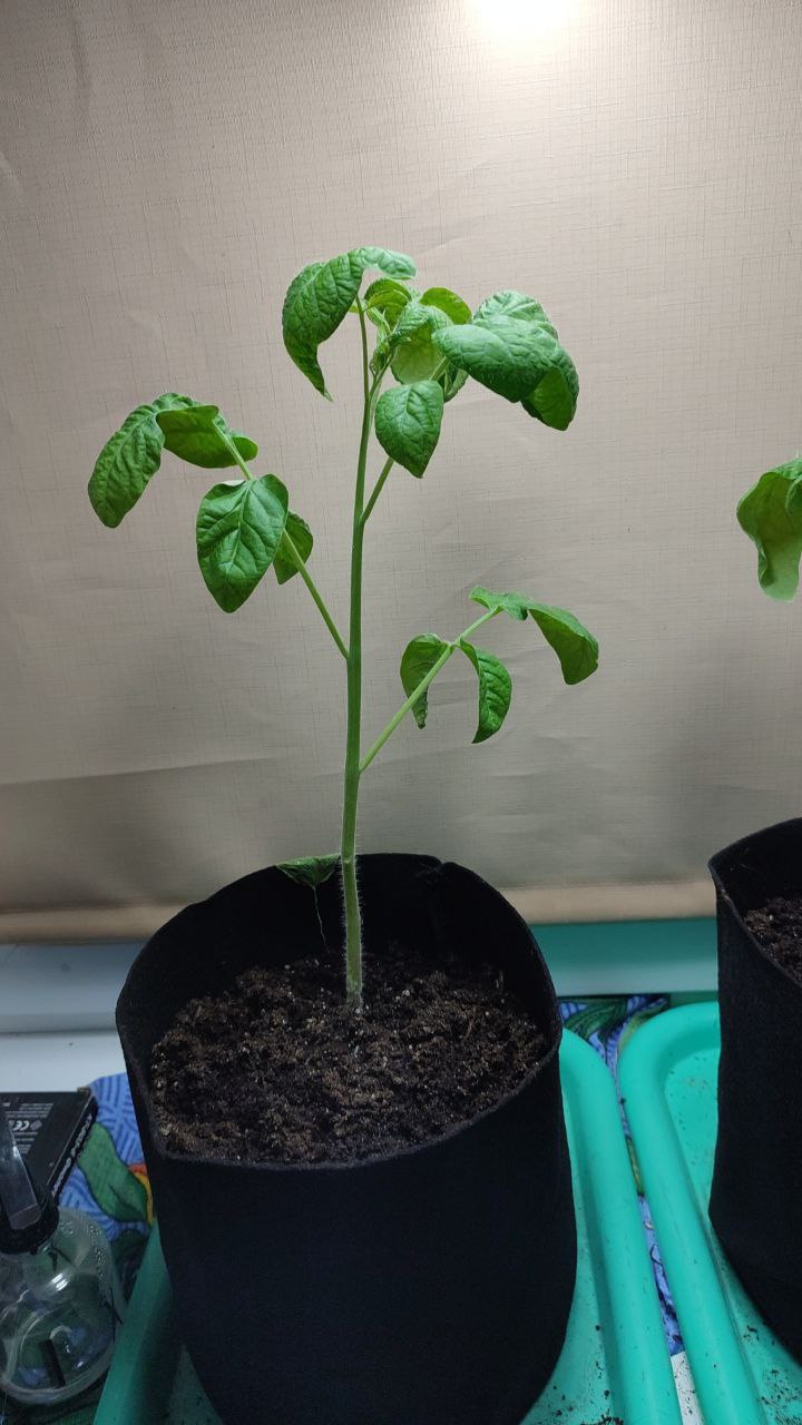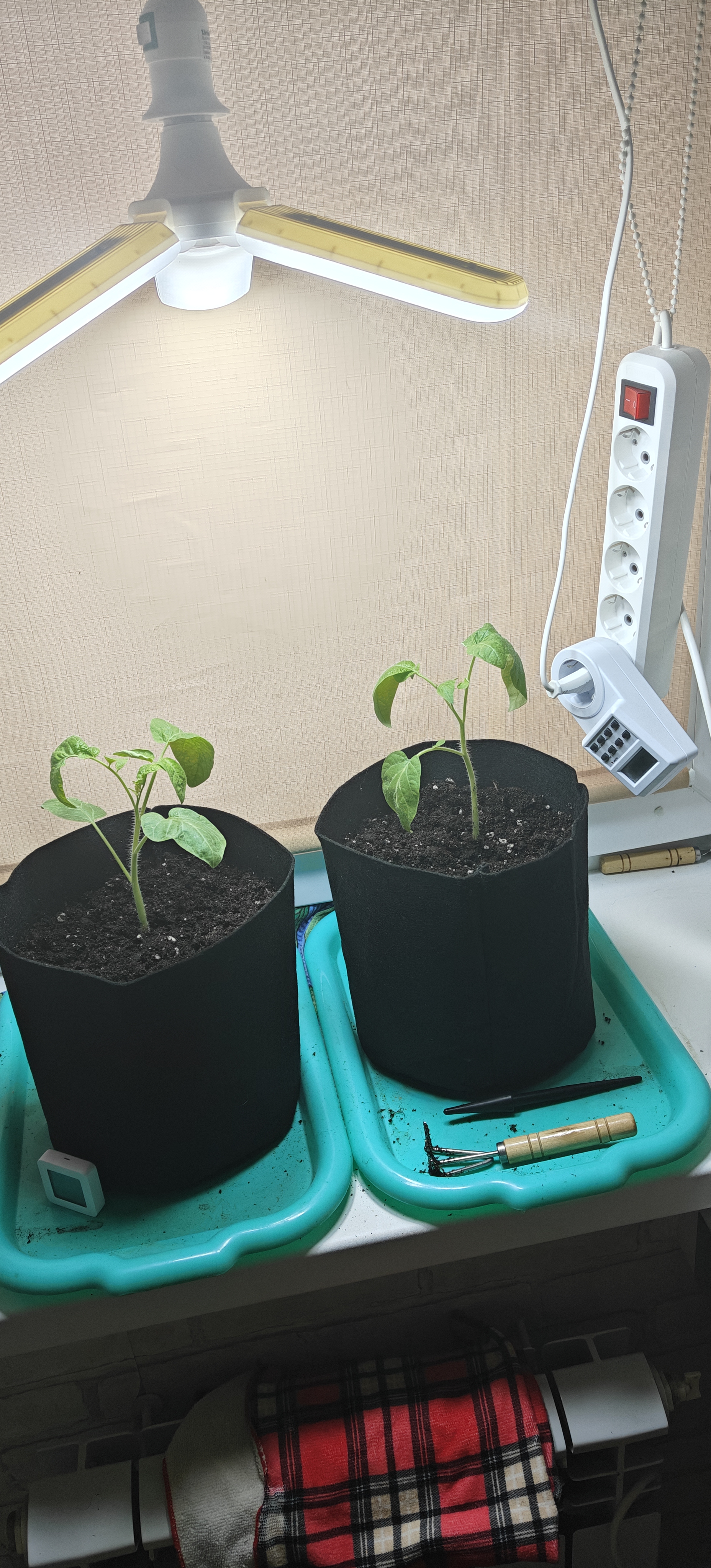Еще хочется рассказать про своих супердетерминантов "30см в высоту". Посадил я их за 2-3 месяца до НГ, думаю, а вдруг уже к НГ будут помидорки, ну да. Купил лампы (ультраговно, как я теперь понимаю, на 9 и 12 ватт), помидорки хоть и не подохли, но вытягивались несусветно и выглядели соответствующе. Замотал их стеблями внутрь горшка, оставив верхушки, и землей досыпал. Думал, все, конечная, но рука не поднималась выбросить. А потом пришла весна - и внезапно мои доходяжки превратились в гигатоматы с толстенными стволами, уже 3 зайчатки помидорок есть, самая крупная где-то полсантиметра. В итоге, получается, с посадки до этого момента прошло 7-8 месяцев.