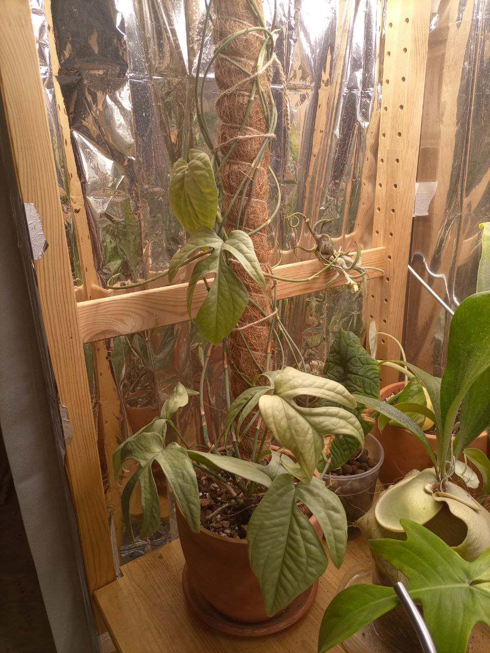 Как же меня продолжает изводить "эскелето". З листа лезут, все заебок, начинают разворачиваться, дыры норм, все идет норм. Но на последней стадии где-то 1/4 листа нихуя не разворачивается и бледноватая. И что же вы думали? Традиционный приход трипсов за свежей листвой/жратвой. Старую они прокусить ни на филах, ни на монстерах они у меня не могут, зато только вылезшие листья - пожалуйста. Залил мылом, залил перекисью. пара палок доктора/автары в грунт, срез всей хуйни, где они могли прятаться. В результате, думаю, что все 3 листа, если выживут, то лишатся части листовой пластины. И такая хуйня 8 из 10 раз. Раньше я резал весь лист, но понял, что так растению ещё хуже, ведь общая площадь озеленения страдает, то есть сил у растения не пребывает. По-прежнему ищу неубиваемое теневыносливое ампельное растение на полку над печкой. Что-то из лесных кактусов предпочтительно. Но сойдет и хойя (не карноза), или даже ароидные (что-то посмотрел на марбл квин и не вставило как-то). Рад вашим советам, цветаны! Короче, что-то не самое банальное, деревянное (пох на минимум света зимой и минимальную влажность), теневыносливое и растущее вниз.