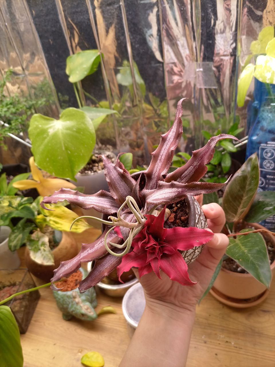 На самом деле это не всё, есть ещё с пяток растений разных, но их уже не стал фотать. Сказать особо нечего, половину надо пересаживать, половина в целом норм. Я думаю купленного тут примерно 0% и всё взято хуй пойми откуда типа помоек. В каком-то треде видел прям один в один на первом пике справа внизу растение, тут такое же состояние, хз может отойдёт. Был залит просто ужас. На втором пике вот эти штуки слева, они же ебать дорогие должны быть да? Я видел во всяких ашанах, там цены за них ломят охуеешь. На третьем два фикуса из веток. И два не знаю чего из косточек. Мб апельсин\мандарин? Им видимо света не хватало, поэтому они ебанули такими здоровыми. В холле ещё чёто подобное растёт, там условия просто пиздец атас, он раза в два больше, но не так мясистый. Ну и на четвёртом в треде цветоводства пусть будет хоть один цветочек вот такой интересненький!