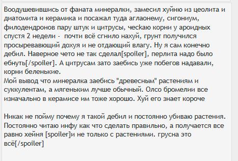 Я по диагонали пролистал тред, редко к вам захожу так как тема мне интересная я в основном в ридонли последние года тут - так что ответов не будет, но пару комментов оставлю: был намек что толстянка может загнуться в черноземе - нихуя - она его обожает, две гигантские толстянки растут уже более 10 лет - одна в чистом черноземе с перлитом, другая в смеси чернозема, песка и дерновой земли, самое главное для нее это дохуя солнца и большой горшок (говорят лучше широкий и низкий - но одна у меня в шарообразном такая же классная как и в широком низком) и забывать поливать - чтобы там периодически пустыня была с пересушеным грунтом. По поводу субстрата для ароидных - мамка любит спатифилум - конечно он не прихотлив весьма и прекрасно рос в самом обычном черноземе, но год назад я его пересадил в субстрат магазиный и он мне и цветочкам очень понравился - воздушный и в то же время очень сбалансирован по влагоудержанию - сложно залить или засушить - пик 3. Спасибо за внимание, а жаль что сейчас пальмы в постсовке непопулярны - в союзе они были в каждой больнице, в каждом НИИ, в каждом учреждении - я много времени проводил среди них в детстве теперь вот ностальгирую, а сейчас как-то не растит их народ, жаль - хотя они весьма сложны в выращивании тем более в условиях наших коммиблоков - ебатория со светом и влажностью - оранжерею им нужно в идеале.