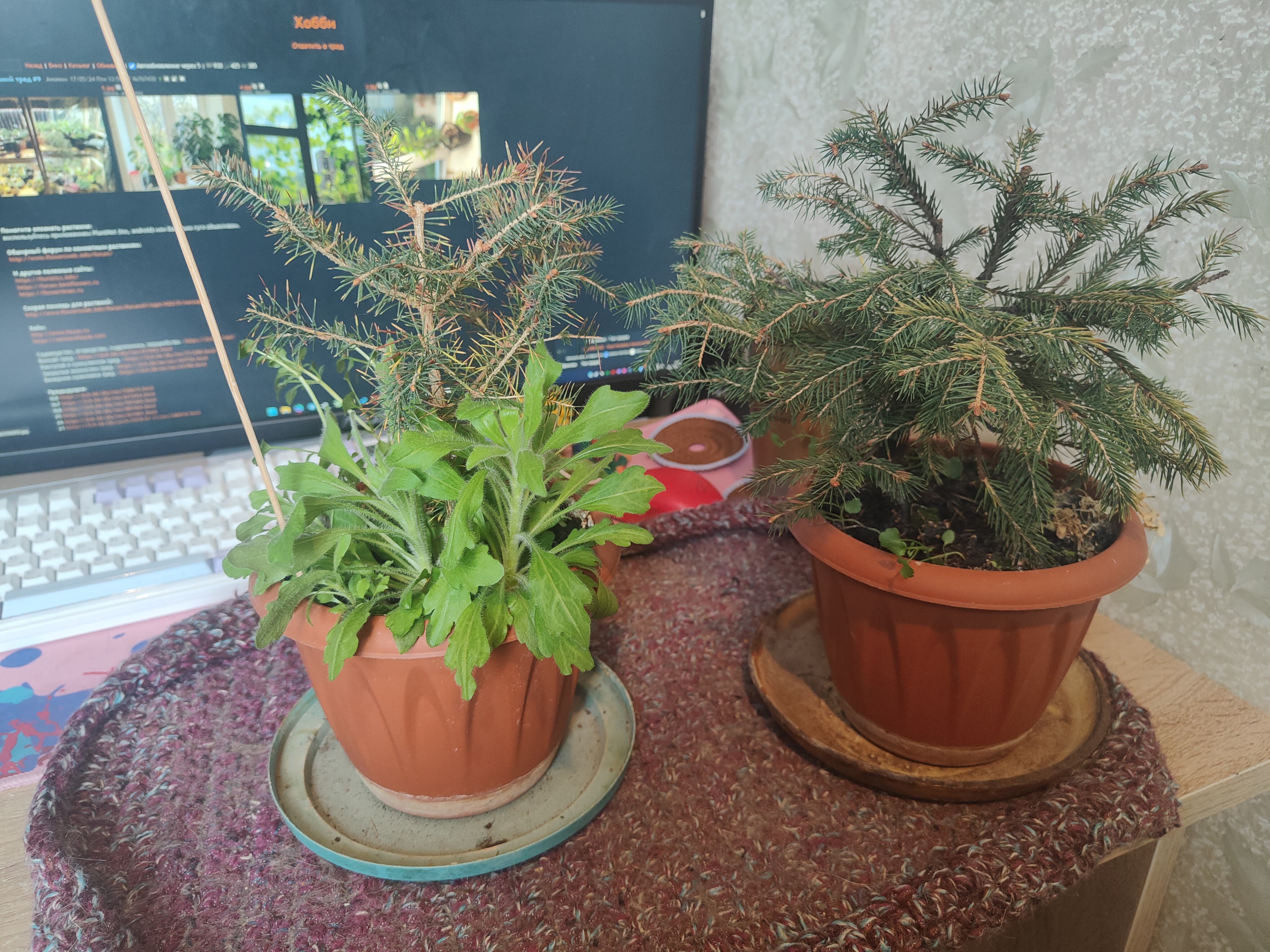 Ёлки фоткать не стал, ничего интересного стоят зелёный, вроде норм. Нашёл им наконец-то подходящее место на балконе. Заебись.
