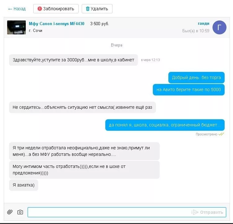 >>776311 Жёстко, но не сдавайся, обычно в один день начинают сразу несколько покупателей написывать в какой-то момент, у меня даже 1 раз была борьба за пердолу