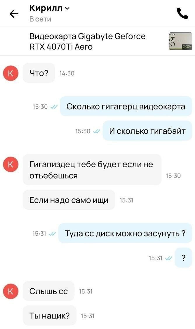 >>773452 Ахахха Мне пидоры и в час и в три ночи пишут с тупыми вопросами продаёте и скиньте ещё фото, когда аккаунт даже не в сети, не говоря о том что приложение авито оповещает о сообщении в 50% случаях