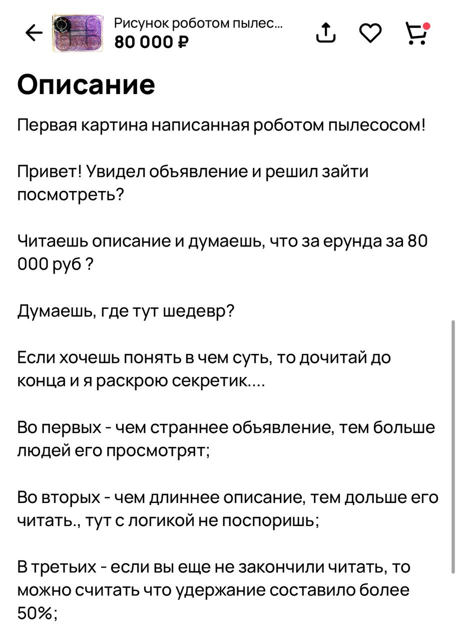 В: Что делать, если покупан предложил цену в разы меньше моей? О: Чё хочешь делай. Но от себя рекомендуем писать в объявлении, что торга нет, это снижает количество абажей (что это? см. ниже) кратно. Да и в целом если какой-то вопрос часто долбят - не поленись и добавь в объявление ответ заранее.