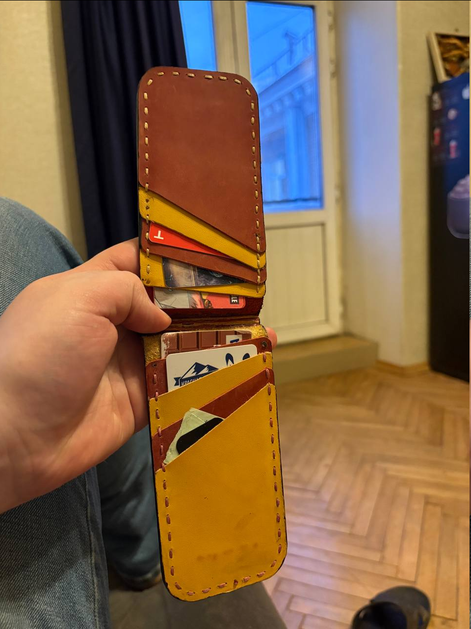 Хочу сделать такой бумажник, который складывается в двух местах и имеет отдел под монеты. Есть ли где готовые выкройки и насколько это реально сделать из кожи, ведь из синтетики он разумеется супер тонкий, а из кожи будет котлета ебаная, не так ли?