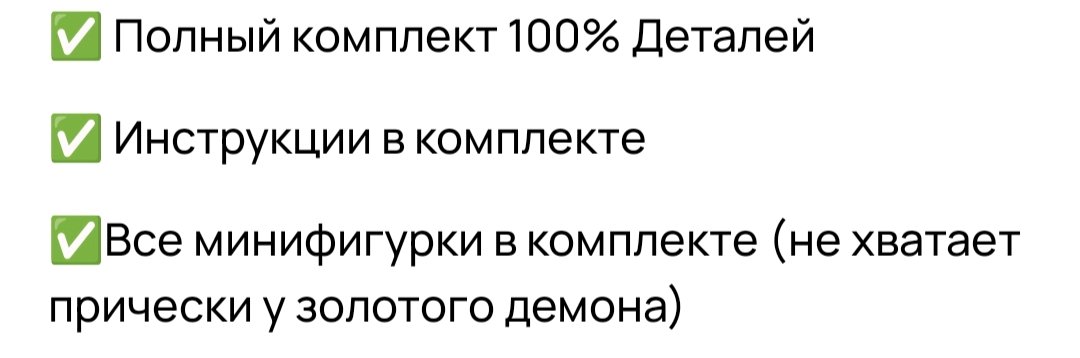 >>783311 - Нет Whipperella (демоница с хвостом, она сама стоит около 2000) и других фиг из набора черного рыцаря 70326 - (тот красный демон с рогами из большого танка только один, самого сета-танка нет) - Джестро без плаща и у других нет косички волос или 1й руки-такие мелкие детали. В остальном все целое (замок, фортрекс, мех черного рыцаря, 70365 (без топора) Замок джестро я бы точно не стал покупать сам, так что безумно рад - он был основным желанием здесь (хотя больше всего хотел конечно же Фортрекс)